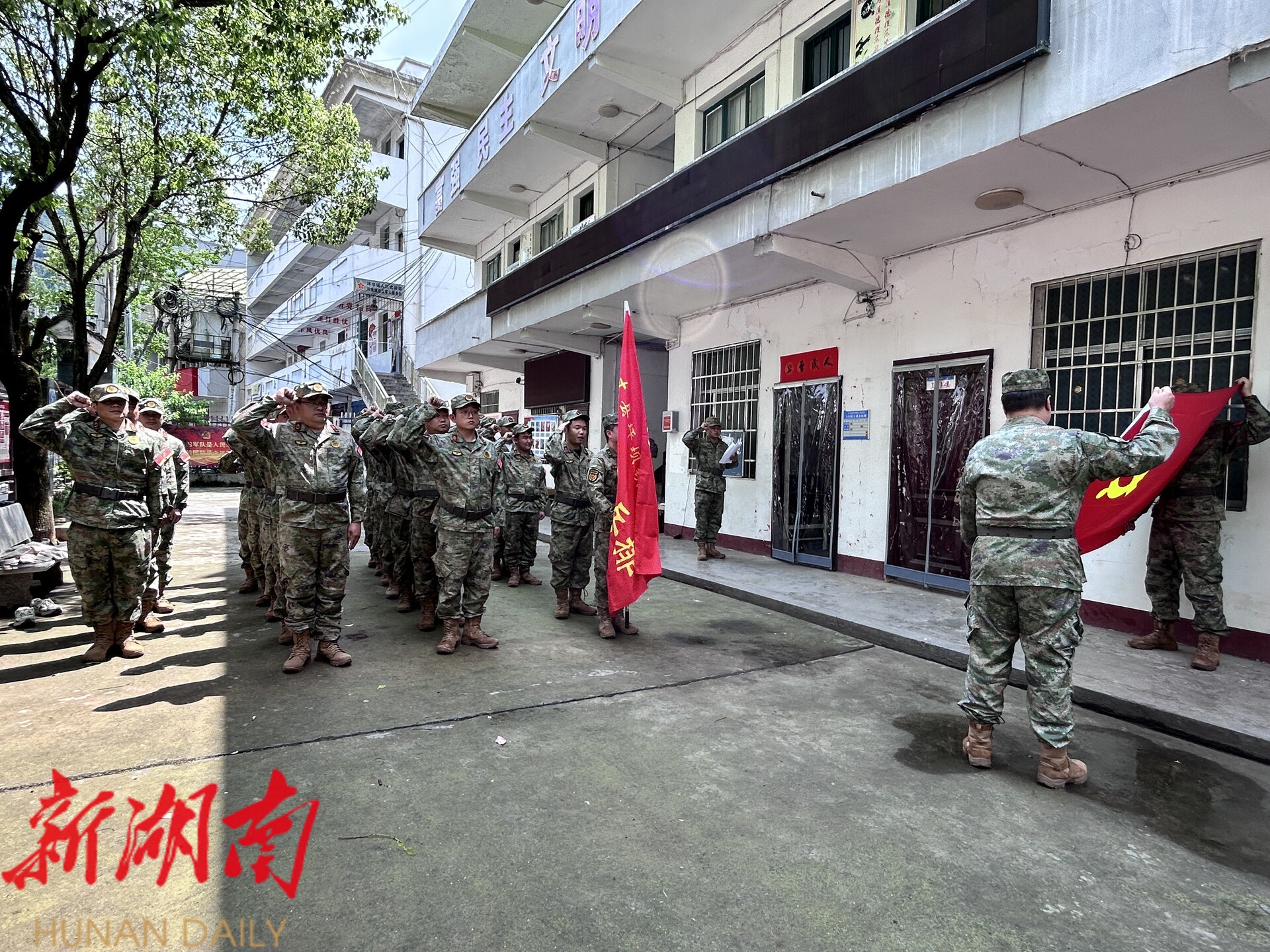 当急难险重任务呼啸而至,他永远是冲在最前的“排头兵”。2023年6月30日,古丈县岩头寨镇遭暴雨突袭,山河失色。吴怀益闻“汛”而动,主动请缨加入民兵救援队伍。次日,他带领坪坝镇20余名民兵紧急驰援重灾区草潭村。面对瘫痪的交通、中断的通讯、损毁的家园,他与战友们并肩奋战在泥泞中,帮助群众恢复生产、重建家园。