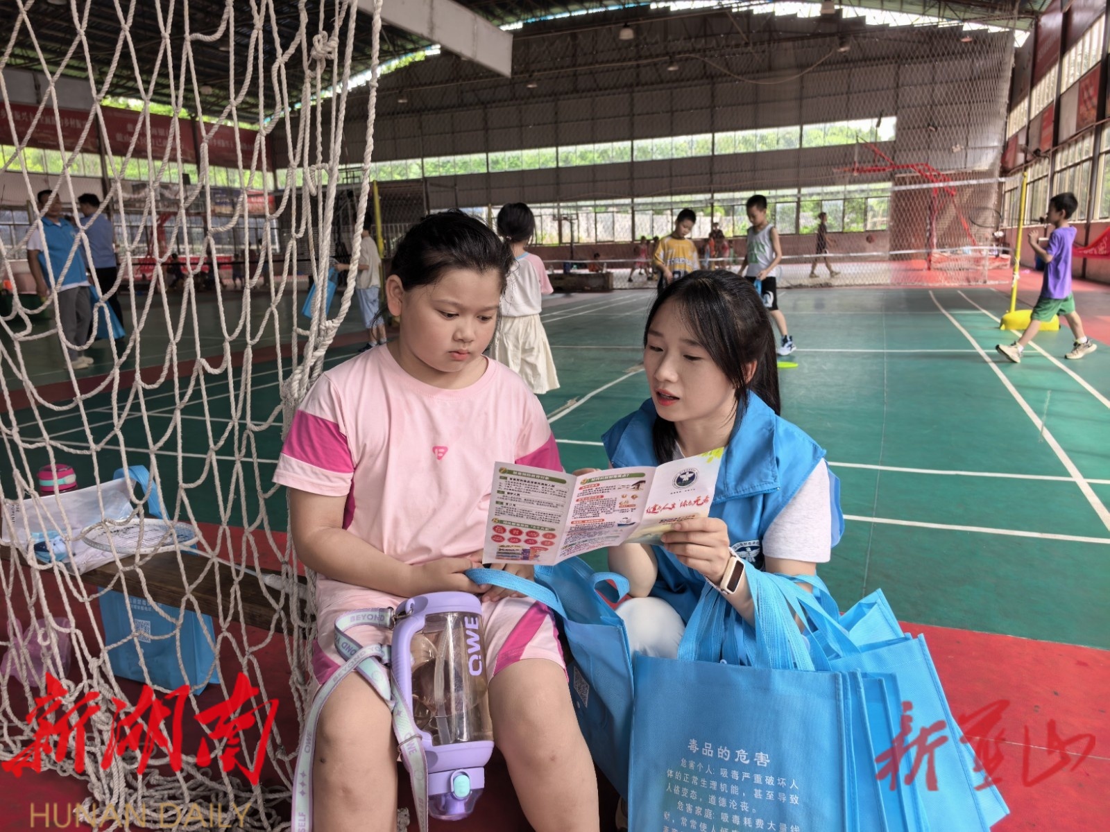 新蓝山客户端8月1日讯 (通讯员 唐智芳)7月31日,蓝山县禁毒宣教中心携手县文化旅游广电体育局、县公安局禁毒大队,在黑子体育馆共同举办“热爱运动、拒绝毒品、拒绝兴奋剂”为主题的反兴奋剂与禁毒宣传活动。此时正值暑假,场馆内有众多青少年参与篮球、乒乓球和羽毛球培训,为宣传活动提供了良好的受众基础。