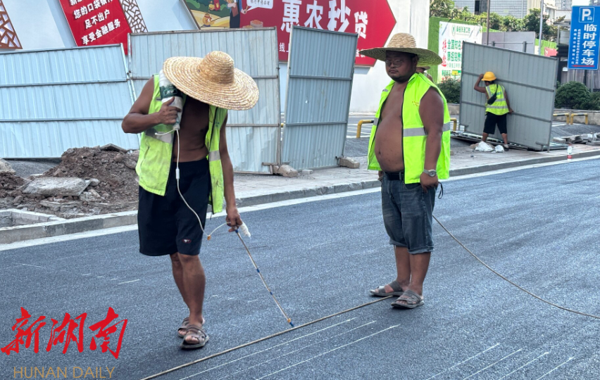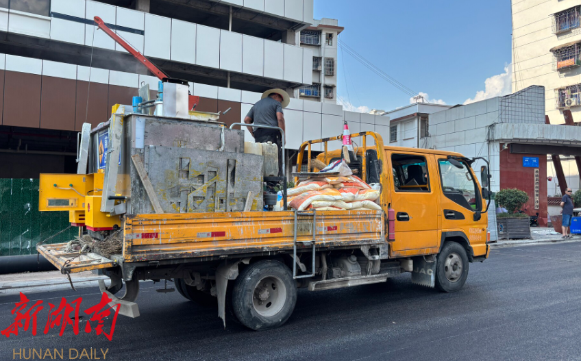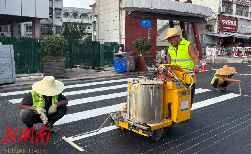 施工现场,施工人员正抓紧进行道路标线施划工作,此次改造新建管径1000毫米雨水管和管径500毫米污水管,实现雨污精准分流,减少对河道及地下水污染,同时,还完成了管径400毫米给水管网和管径110毫米弱电管道升级,完善周边基础设施。