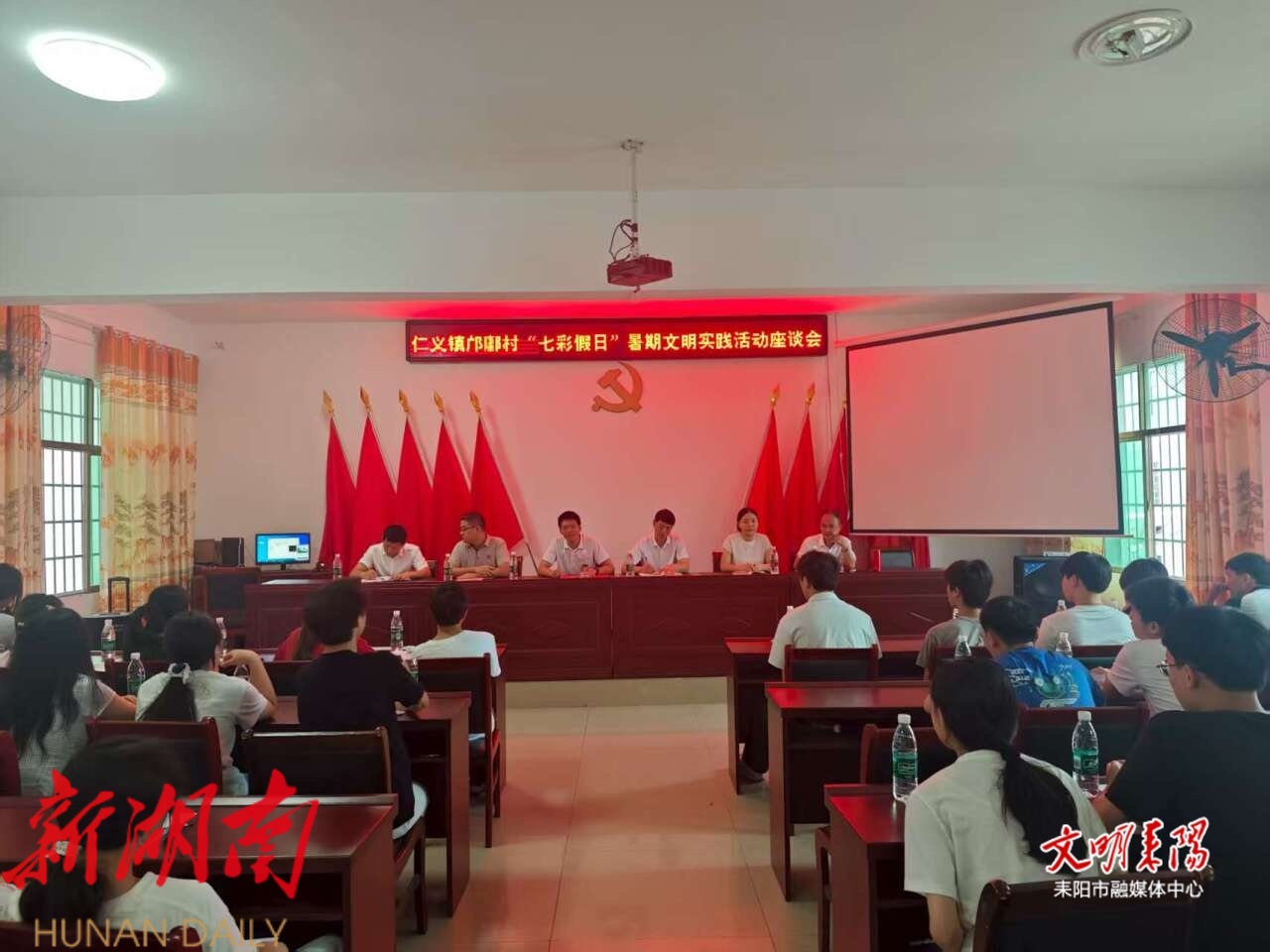 耒阳融媒7月31日讯(记者 梁梓坤 通讯员 廖昕) 7月30日,仁义镇邝鄘村新时代文明实践站开展“七彩假日”文明实践活动。来自全镇的50余名返乡大学生和高中生与镇村干部、相关部门工作人员一道,通过座谈宣讲、入户宣传等形式,将文明理念送到群众家中,为乡村文明建设注入青春力量。