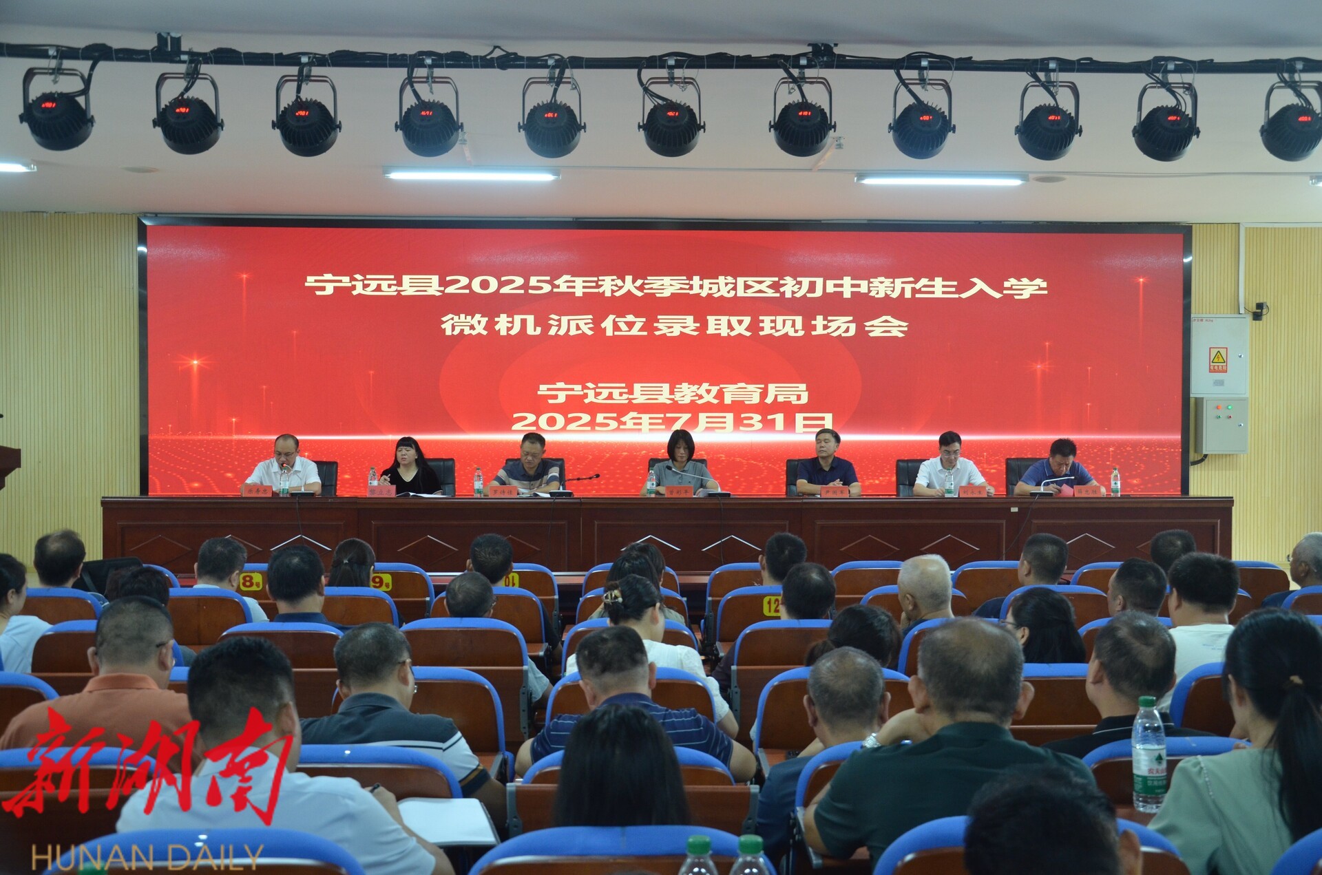 湖南日报·新湖南客户端8月1日讯(通讯员 范姜茜子) 7月31日,宁远县2025年城区公、民办初中学校七年级新生入学微机派位招生工作在县二中顺利举行。副县长曾彩平、县政协副主席尹国军参加。