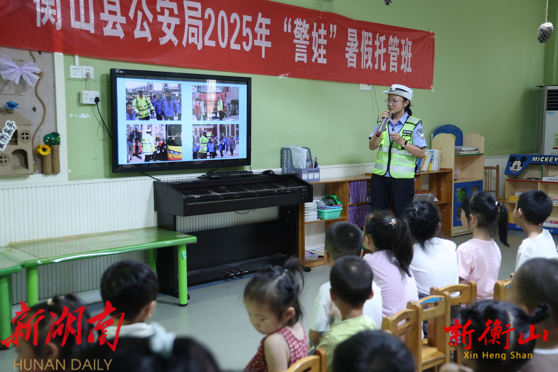 新衡山客户端8月1日讯(记者:赵诗 向微 通讯员:谭宗阳)为增强未成年人法治意识和暑期安全防范意识,7月31日,衡山县公安局组织“授课团”来到衡山县辉艳贝贝幼儿园暑期托管中心,开展防诈骗、防性侵、防校园欺凌、防溺水和交通安全知识大课堂活动。