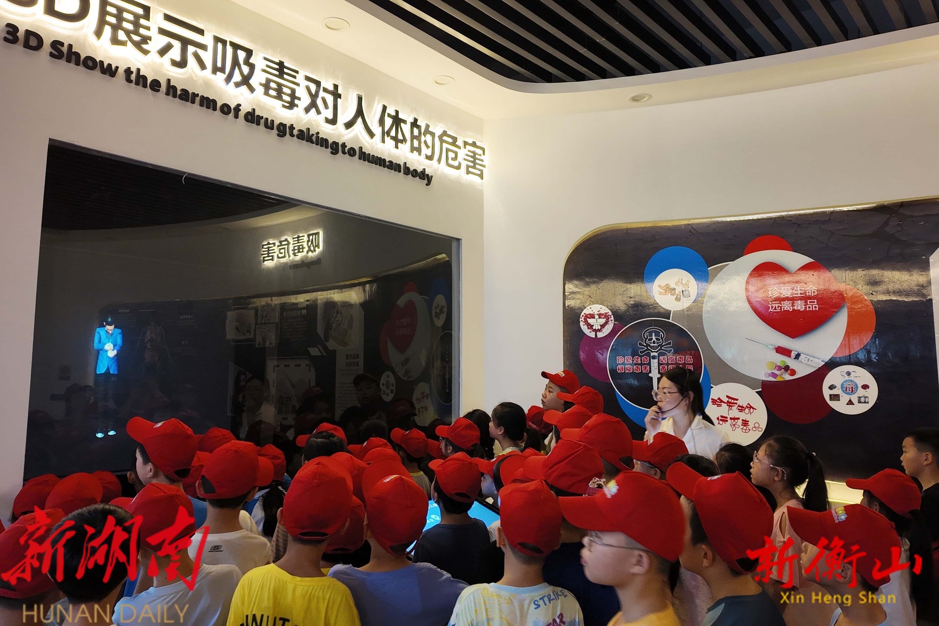 在衡山县禁毒教育基地,孩子们在讲解员的引导下通过观看3D警示教育影片、浏览图文展板、近距离观察毒品模型等多种方式,直观了解毒品的种类、形态及对个人、家庭和社会的严重危害。互动游戏环节中,孩子们积极参与,在轻松氛围中加深了对毒品危害的理解。