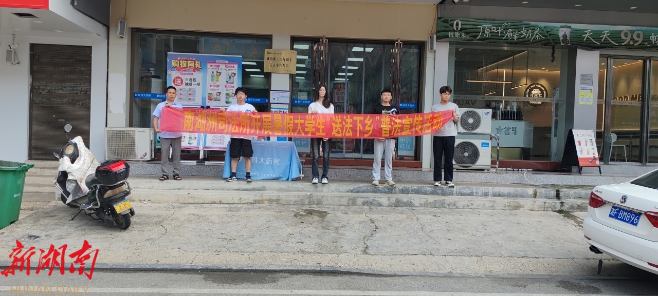 湖南日报·新湖南客户端8月1日讯(通讯员 范紫娟 何思宇) 7月31日,湘阴县南湖洲司法所、南湖禁毒办组织大学生志愿者走进南湖洲集镇,开展“法治下乡・反诈同行”主题普法宣传活动,将法律“护身符”送到群众身边。“大学生用我们听得懂的说法,连我这种不识字的都记住了‘不轻信、不转账’!”南湖洲社区村民李大妈为活动点赞。