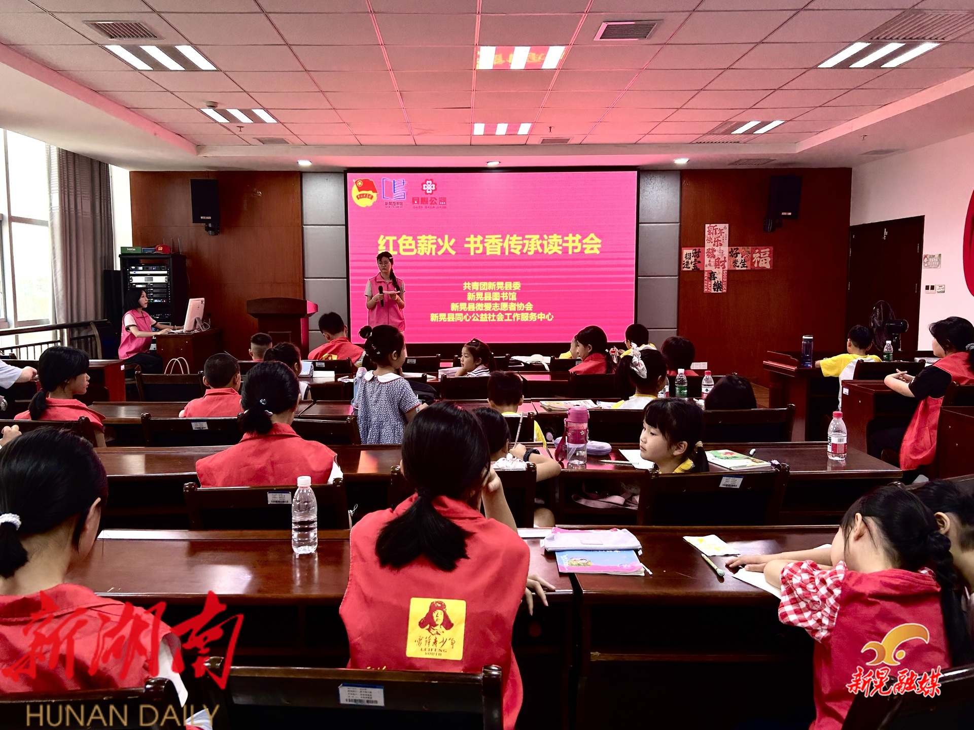 新晃融媒 8 月 1 日讯(记者:蔡欣颐)为庆祝中国人民解放军建军9 8 周年, 深入 传承红色基因,弘扬铁军精神, 8月1日,团县委、县图书馆、新晃微爱志愿者协会、新晃同心公益社会工作服务中心在县图书馆联合开展“红色薪火 书香传承”读书会。