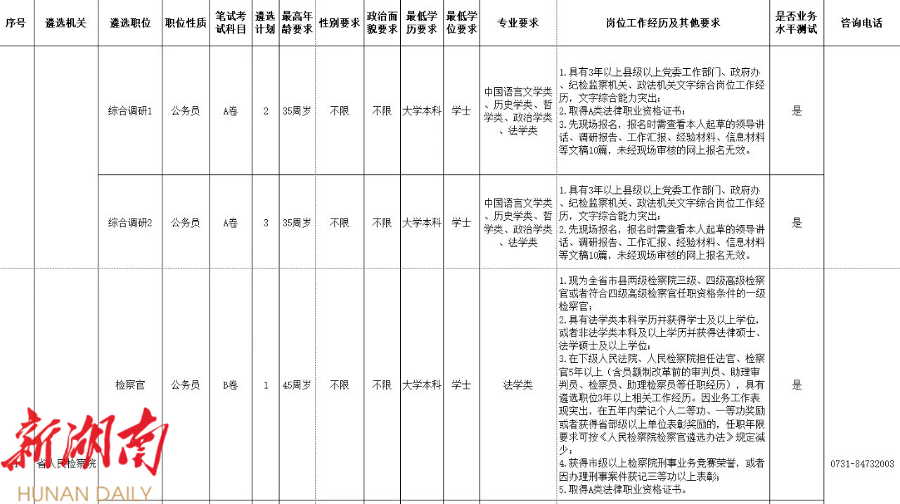 7月31日,湖南省公务员局发布《2025年度湖南省省直机关公开遴选公务员公告》根据公告附件湖南省人民检察院遴选14名工作人员。