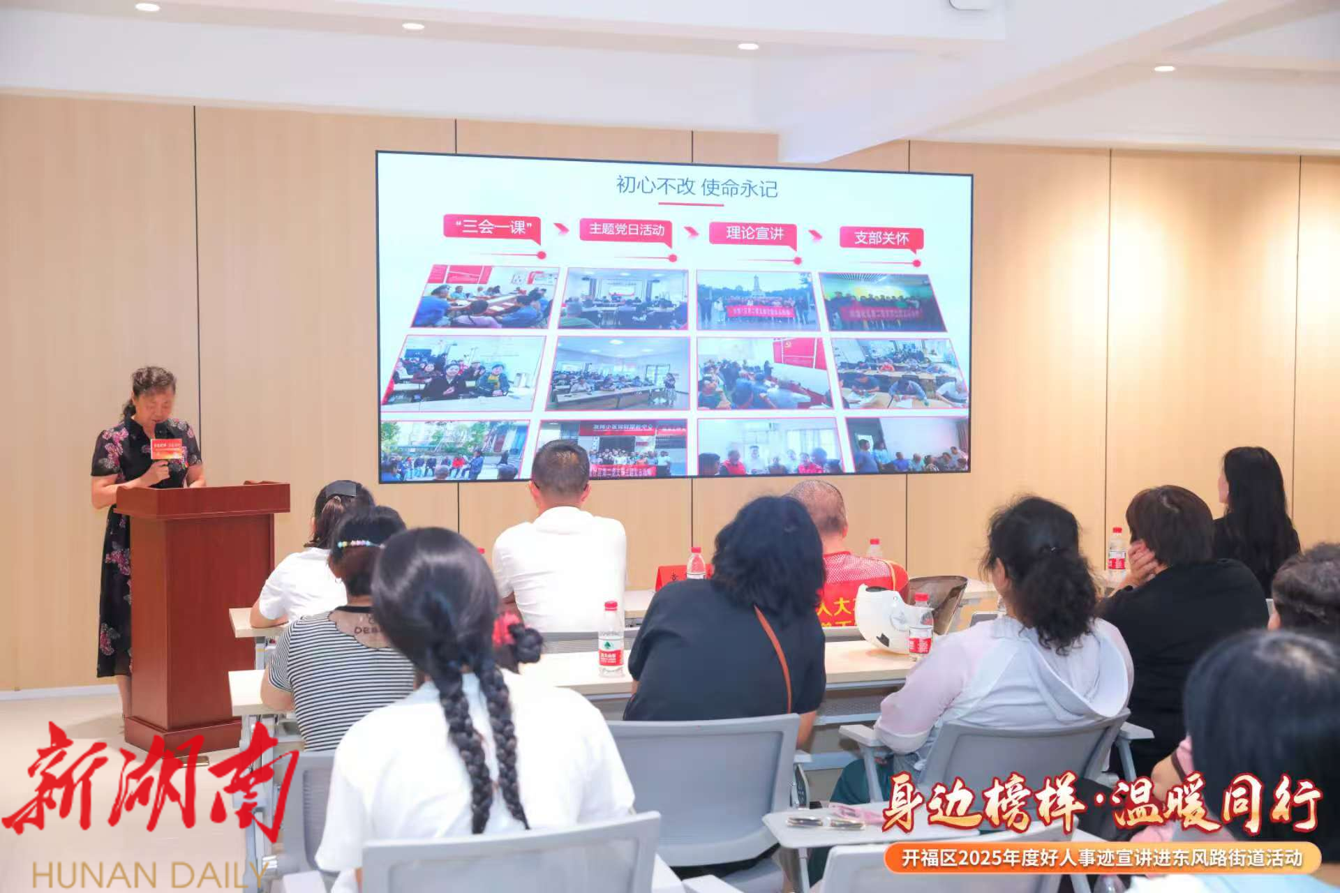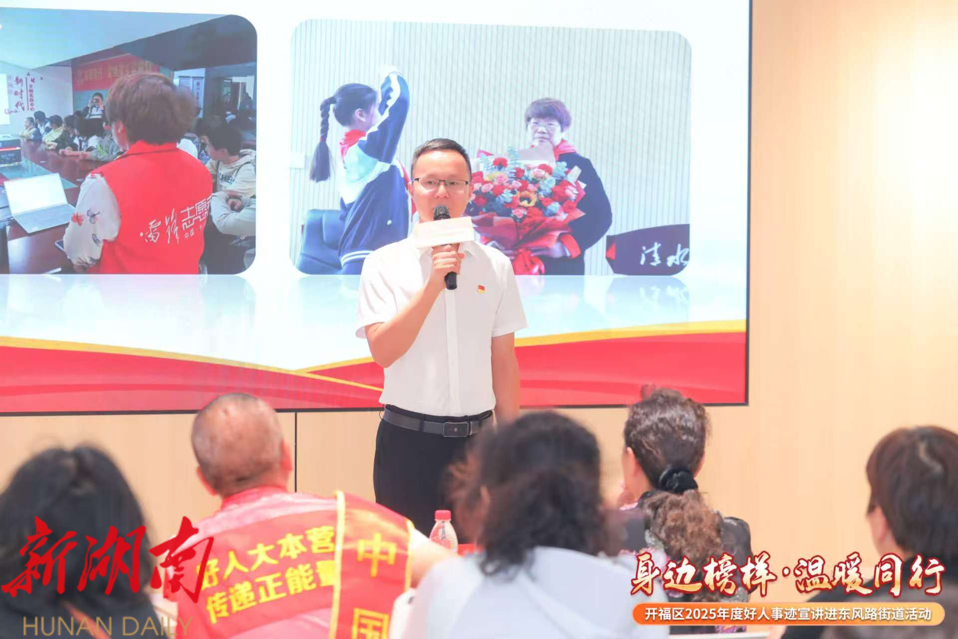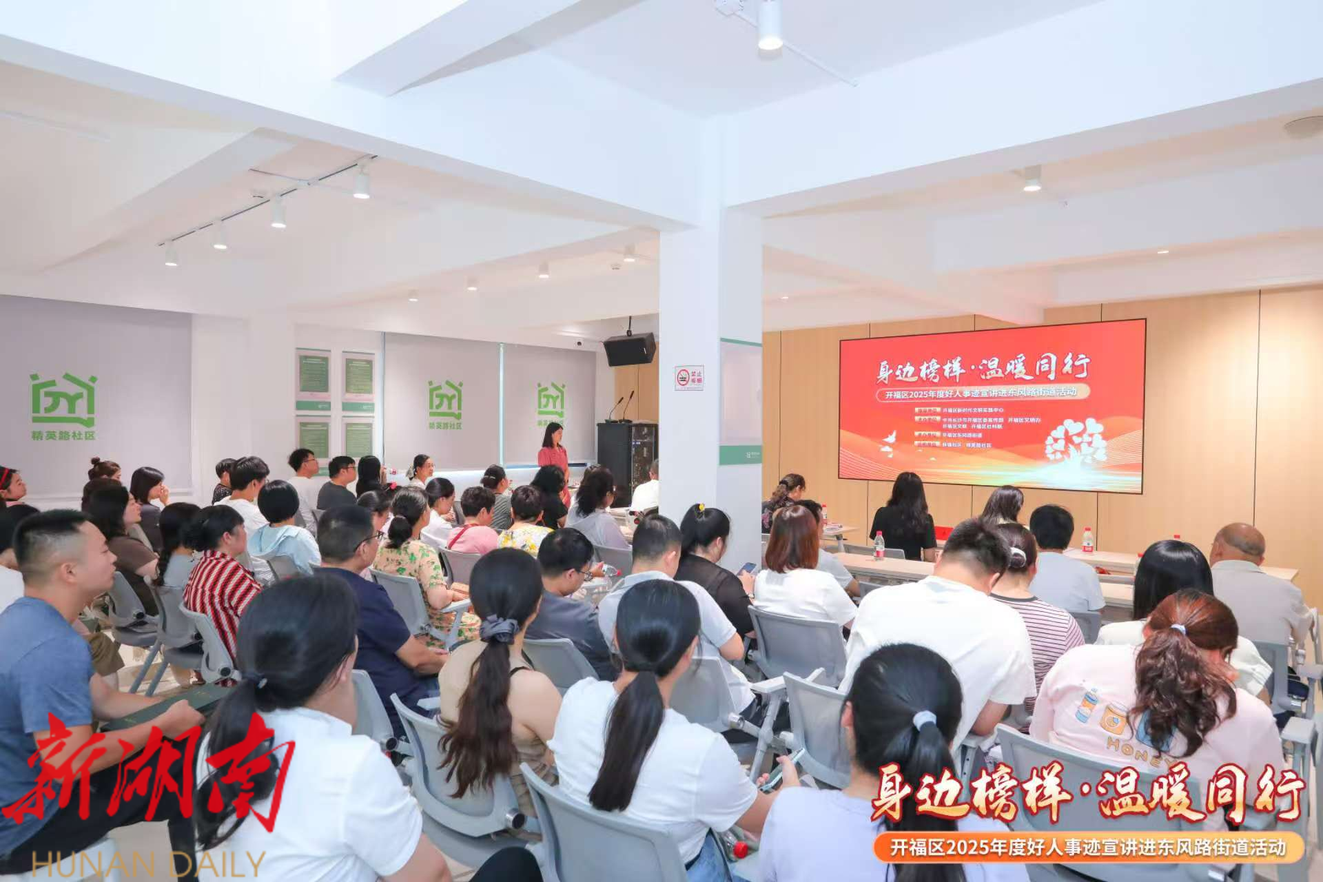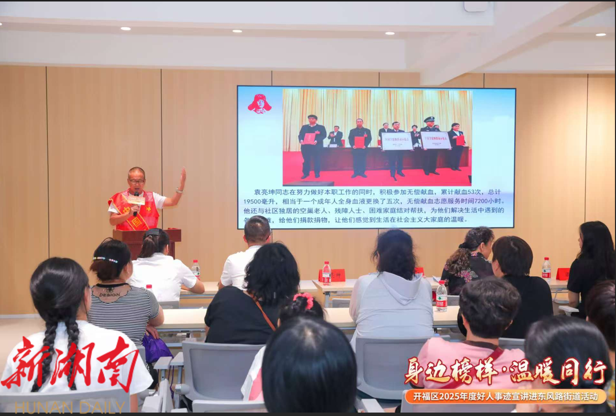 为发挥各级“好人”事迹的精神引领、典型示范作用,8月1日下午,开福区东风路街道举办“榜样力量·温暖同行”——开福区2025年度好人事迹宣讲进街道活动。各社区“两委”、党员、专职雷锋志愿者、群众代表及街道各部办(中心)干部职工代表等共计100余人参加。
