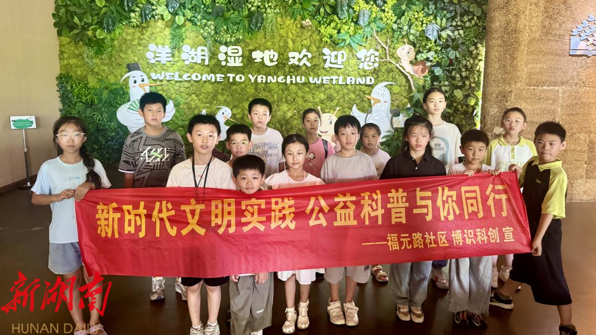 聚焦自然认知与科学启蒙,福元路社区以“以文化人”为核心理念,联合博识科创打造系列探索类活动,将文化浸润融入自然与科技探索全过程,让青少年在感知世界的过程中涵养文化素养、启迪思维智慧。7月12日,“探索湿地奥秘”户外实践活动组织20余组亲子家庭走进洋湖湿地科普馆,通过参观 “多彩世界”场景还原、湿地生态等五大主题展区,让大家深入了解湿地生态系统、生物多样性及环境调节作用,增强生态保护认知,激发对自然的热爱与守护意识。
