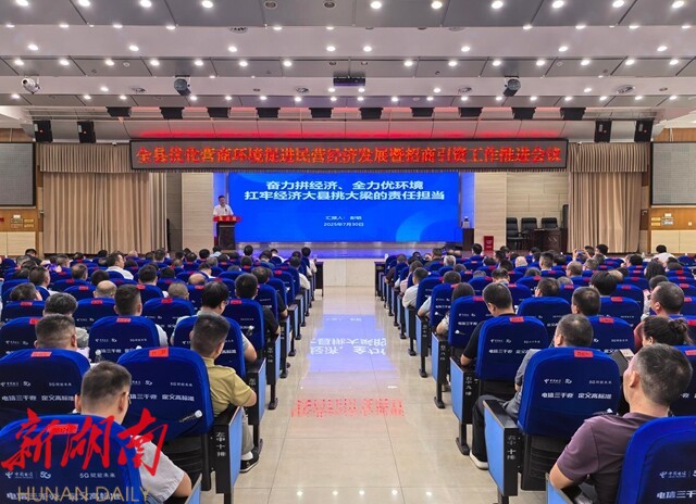 湖南日报·新湖南客户端8月2日讯(通讯员 康爱军)7月30日,新化县召开优化营商环境促进民营经济发展暨招商引资工作推进会,全面梳理上半年以来招商引资和优化营商环境工作成效,开诚布公地向广大企业家报告履职情况,安排部署下阶段工作。县委书记彭韬出席。李峰、杨韶红、邹谊翔、鄢洛阳、彭小瑜、杨铁贞、朱锋、赵伟光等全体在职在家县级领导、在新招商大使、150名营商环境特邀监督员及年度重点监督管理岗位负责人、县直各单位涉企股室(关键业务职能)负责人参加。