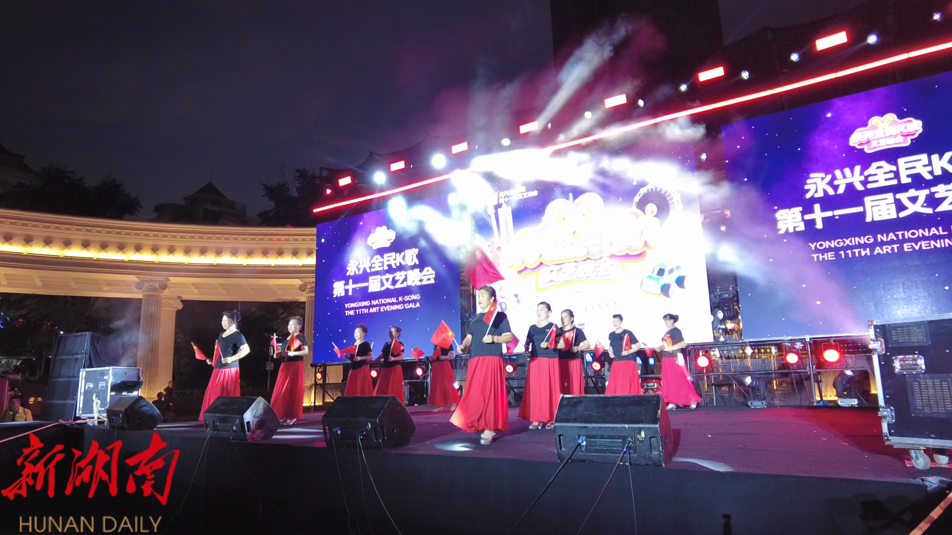 湖南日报·新湖南客户端8月4日讯(通讯员 郭伊凡)8月1日晚,永兴广场灯火璀璨、歌声飞扬,一场庆八一建军节专题文艺汇演在此举行。这场演出以艺术形式共叙军民鱼水情深,吸引上千名市民驻足观看,共同庆祝中国人民解放军建军98周年。