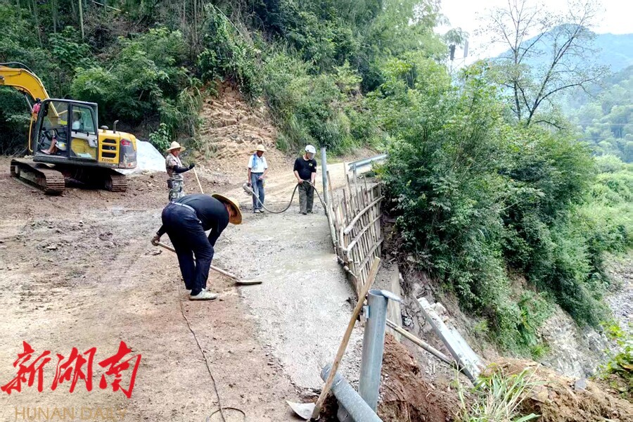 李梓溪村正溪组龙沟湾水毁道路修复现场