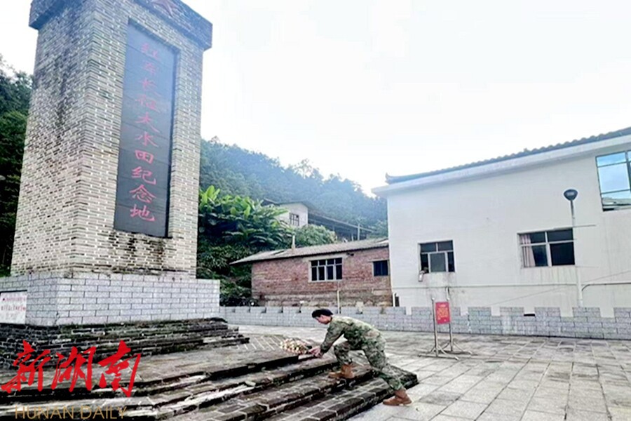 红军长征大水田纪念地,是这片土地上红色记忆的重要载体,这里镌刻着革命先辈们在长征路上的艰辛与不屈,见证了他们为了理想信念奋勇前行的壮丽篇章。活动当天,镇退役军人服务站的工作人员怀着无比崇敬的心情齐聚于此。