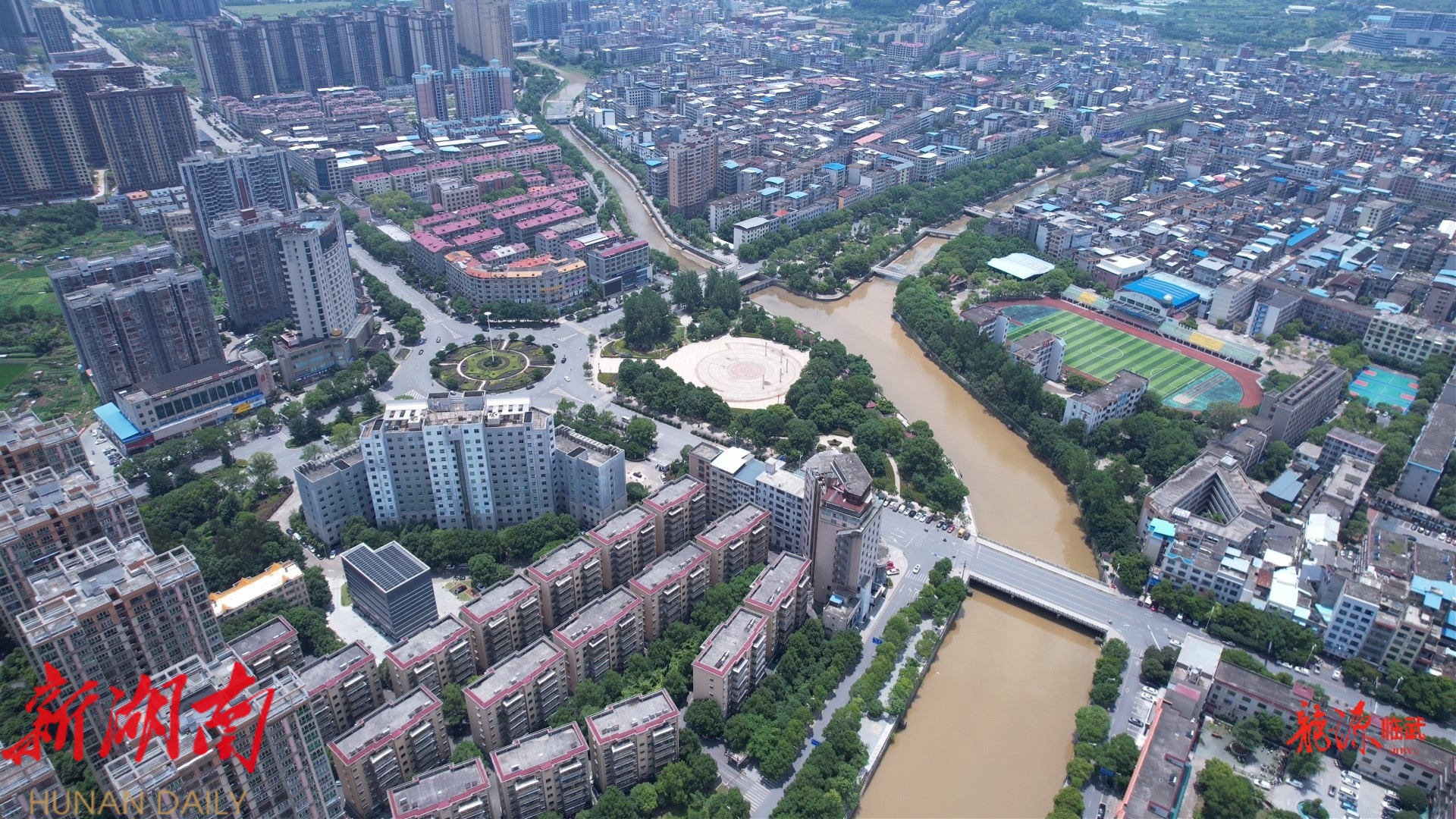 盛夏时节,在许广高速临武互通口旁的武水河人工湿地,水竹芋、美人蕉等水生植物迎风摇曳,生机盎然。从高空俯瞰,这片人工湿地宛如一台超大“绿色净化器”,持续为武水河输送优质水源。