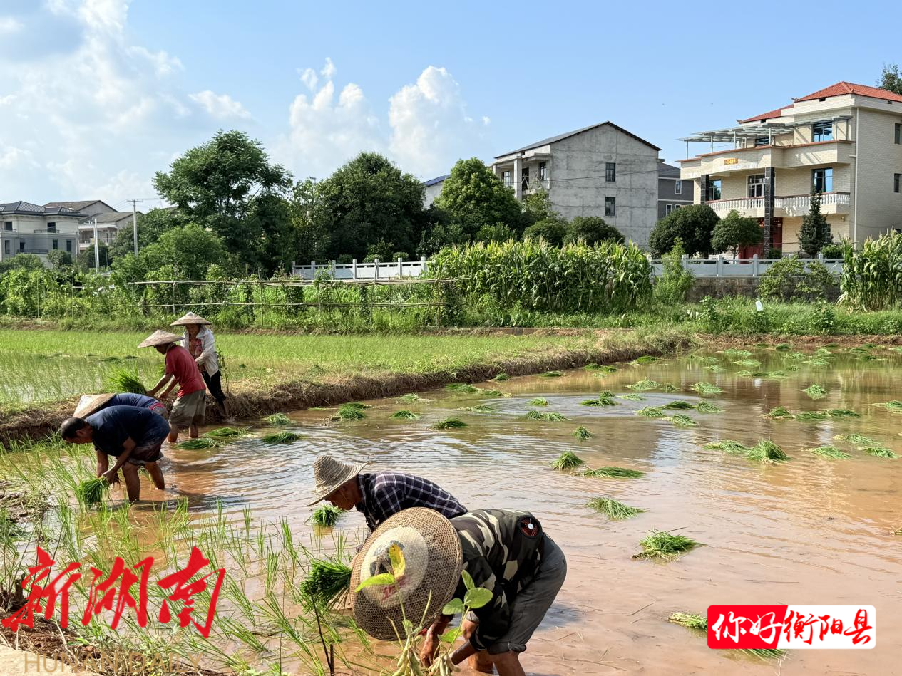衡阳县融媒8月5日讯(记者:李洁霞 通讯员: 罗晨曦) 盛夏农忙正当时 。 当前正值“双抢”尾声 , 在 西渡镇 青里村,60余名农户正头顶烈日抢栽晚稻。随着最后一株秧苗插入水田,这片曾经活跃的小龙虾养殖 基地 正式完成149亩双季稻扩面种植 。