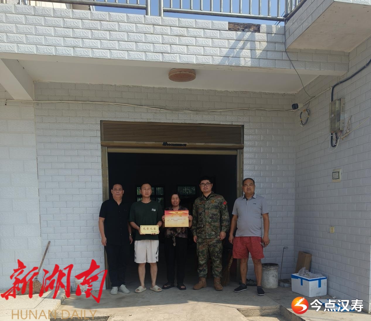 汉寿融媒8月5日讯 (通讯员: 高胜)8月4日,沧港镇组织开展“四有”优秀士兵喜报送达活动,镇武装部、退役军人服务站及村委会工作人员组成慰问组,专程前往荣获“四有”优秀士兵称号的现役军人家中,为其家属送上喜报、慰问金及慰问品,传递党和政府对军人军属的关怀与尊崇。