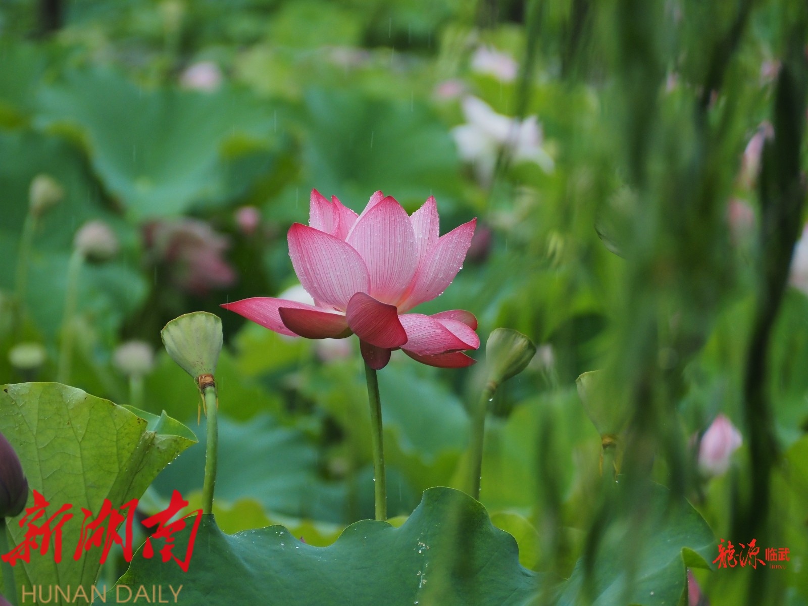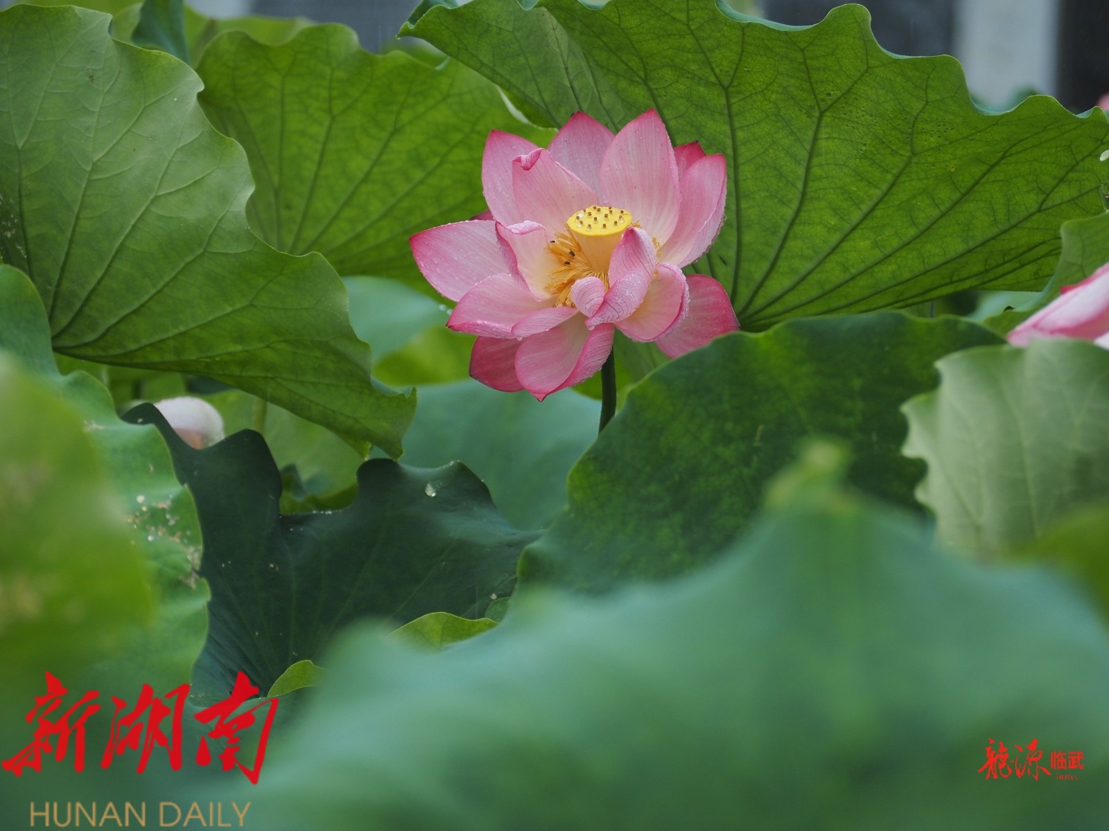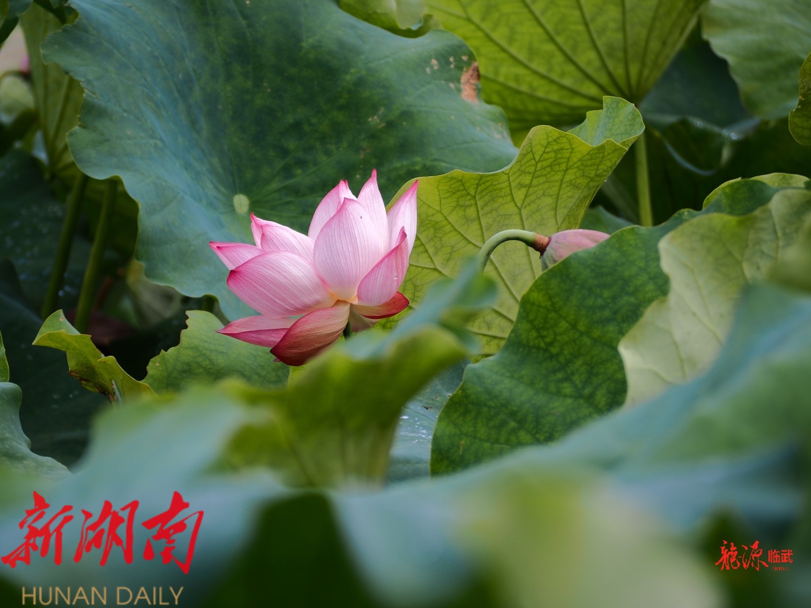 龙源临武客户端8月5日讯(通讯员 王玲娟)季夏时节,临武县水东镇油湾村的荷花依然开得热烈。放眼望去,在层峦叠嶂的群山环抱间,一池荷花映古村,粉红黛绿,随风摇曳,满舍尽是夏荷香。
