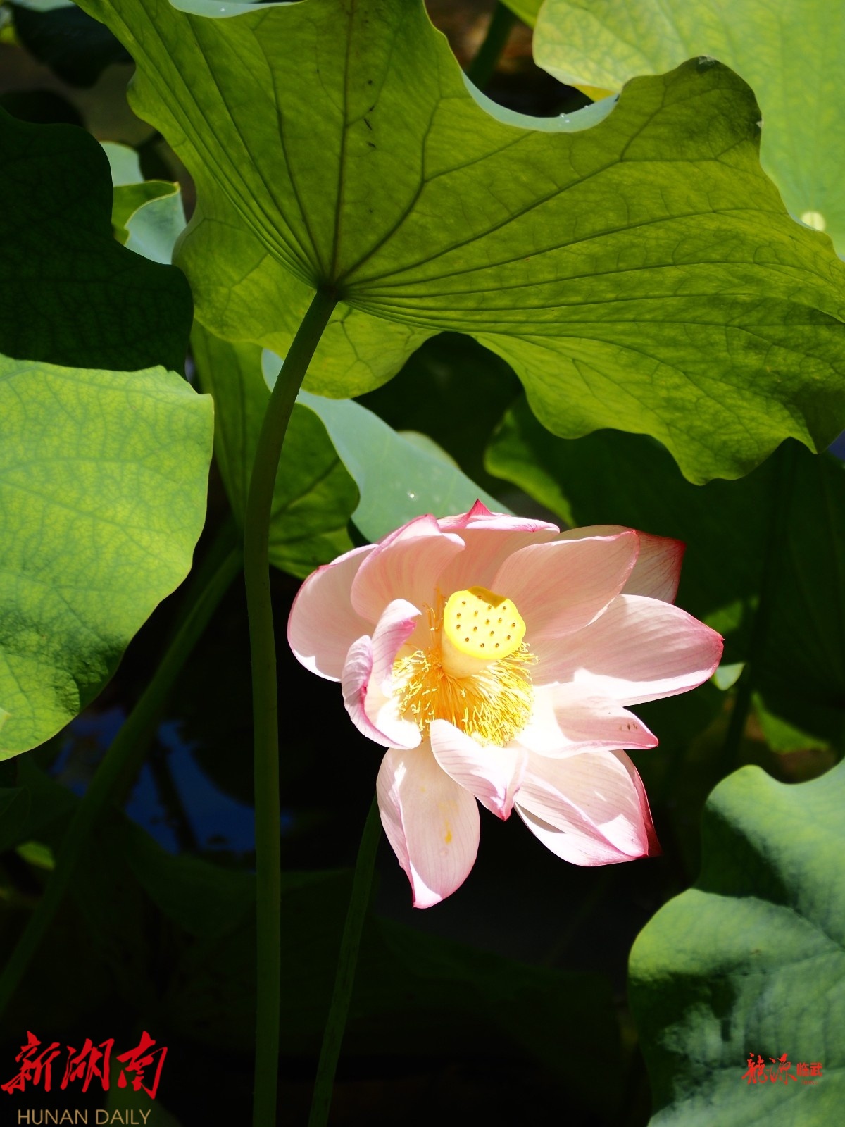 荷叶直挺碧绿,中通外直,不蔓不枝,层层叠叠,如伞如盖。荷花点缀其间,粉的白的,花色、形态各不相同:或花团锦簇,形影妩媚,相互映衬,断荷残枝亦有蜻蜓立上头;或傲然独放,娇羞欲语也有,轰轰烈烈也罢,终是化作池中飘零有情物;或藏身伞盖间,犹抱琵琶半遮面,蓦然回首,恰迎上你的炙热目光。