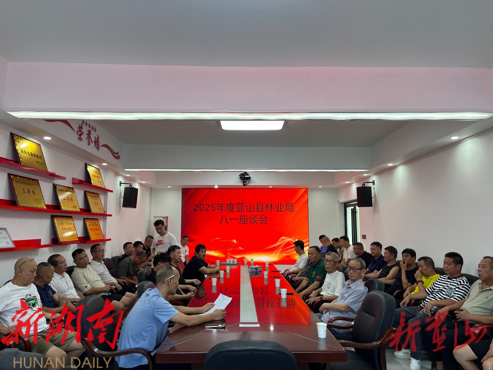 新蓝山客户端 8月5日讯 (通讯员 刘芸 扶巧梅) 8月1日,蓝山县林业局召开2025年“八一”建军节座谈会。40余位曾身着戎装的退役军人齐聚一堂,在重温激情燃烧的军旅岁月中追忆初心,在共话林业发展的蓝图愿景中凝聚力量。