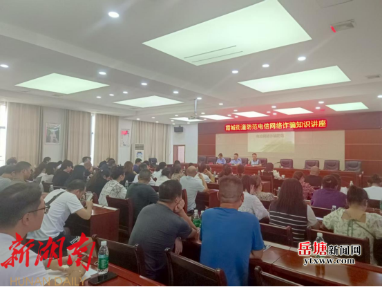 岳塘融媒8月5日讯 (通讯员:彭璇)为加强防范电信网络诈骗宣传力度,进一步提升街道本级干部和辖区居民的防范电信诈骗意识,8月4日,岳塘区霞城街道办事处联合岳塘公安分局刑侦大队和霞城派出所开展防范电信网络诈骗知识讲座,机关全体干部、各村社综治专干、“三长”代表共计百余人参加。