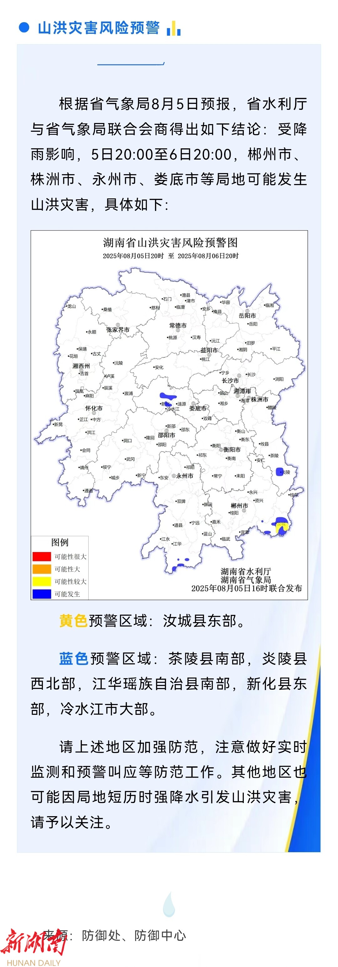山洪灾害预警来了!郴州、株洲、永州、娄底等地请注意