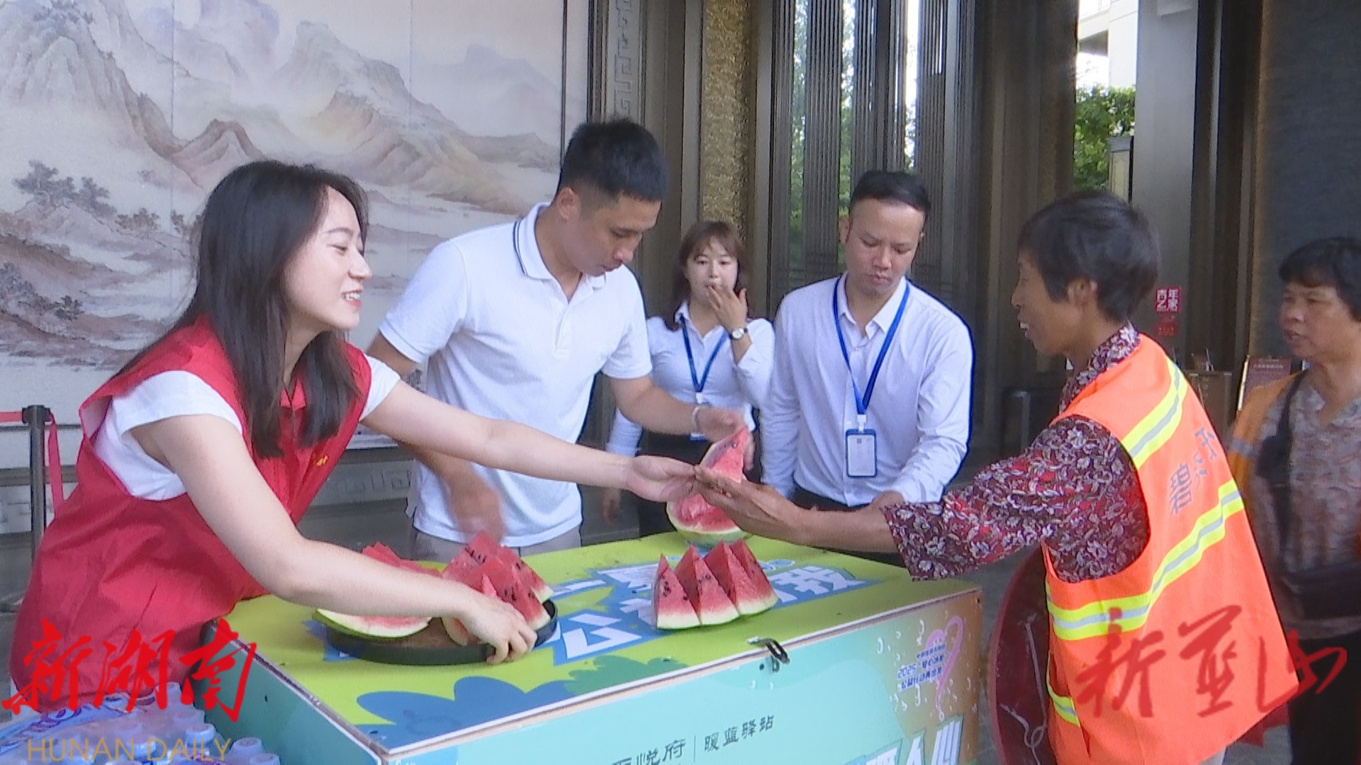 新蓝山客户端 8月5日讯 (通讯员 彭嘉玲)炎炎夏日,烈日炙烤着大地,交警、环卫工人、消防员、外卖骑手等户外劳动者仍坚守岗位,直面高温“烤”验。连日来,蓝山县多部门联动开展“夏季送清凉”活动,用实实在在的关怀为高温下的坚守者们撑起“清凉伞”。