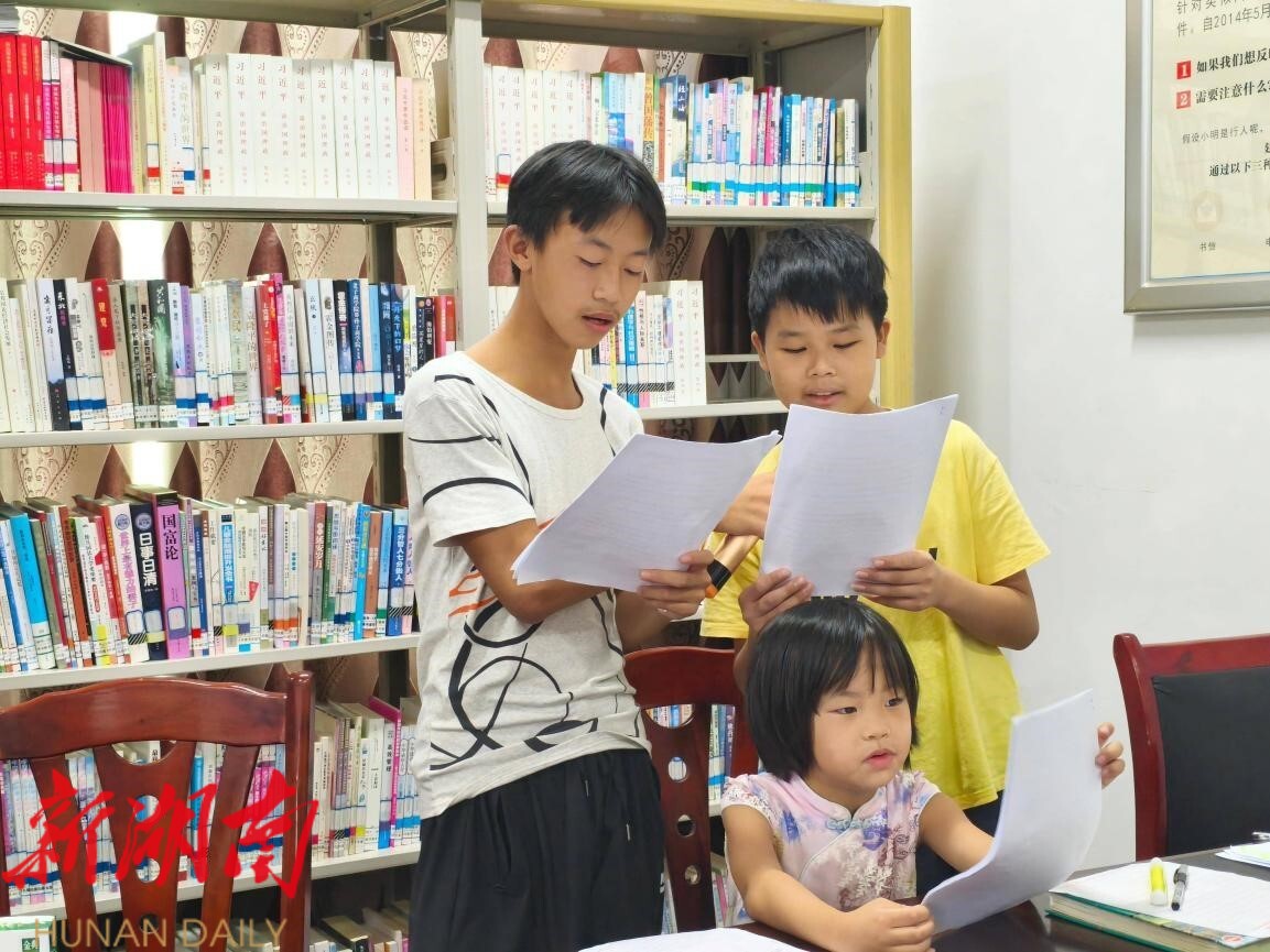 湖南日报·新湖南客户端8月6日讯(通讯员 唐朋林)“草长莺飞二月天,拂堤杨柳醉春烟.......”8月6日,在黎家坪镇江边湾村农家书屋里,一场“书香伴童行”阅读活动正有声有色地开展。12名留守儿童在志愿者的带领下,通过“角色扮演”、“故事新编”等小游戏,共读经典,共品书香,感受阅读之美。