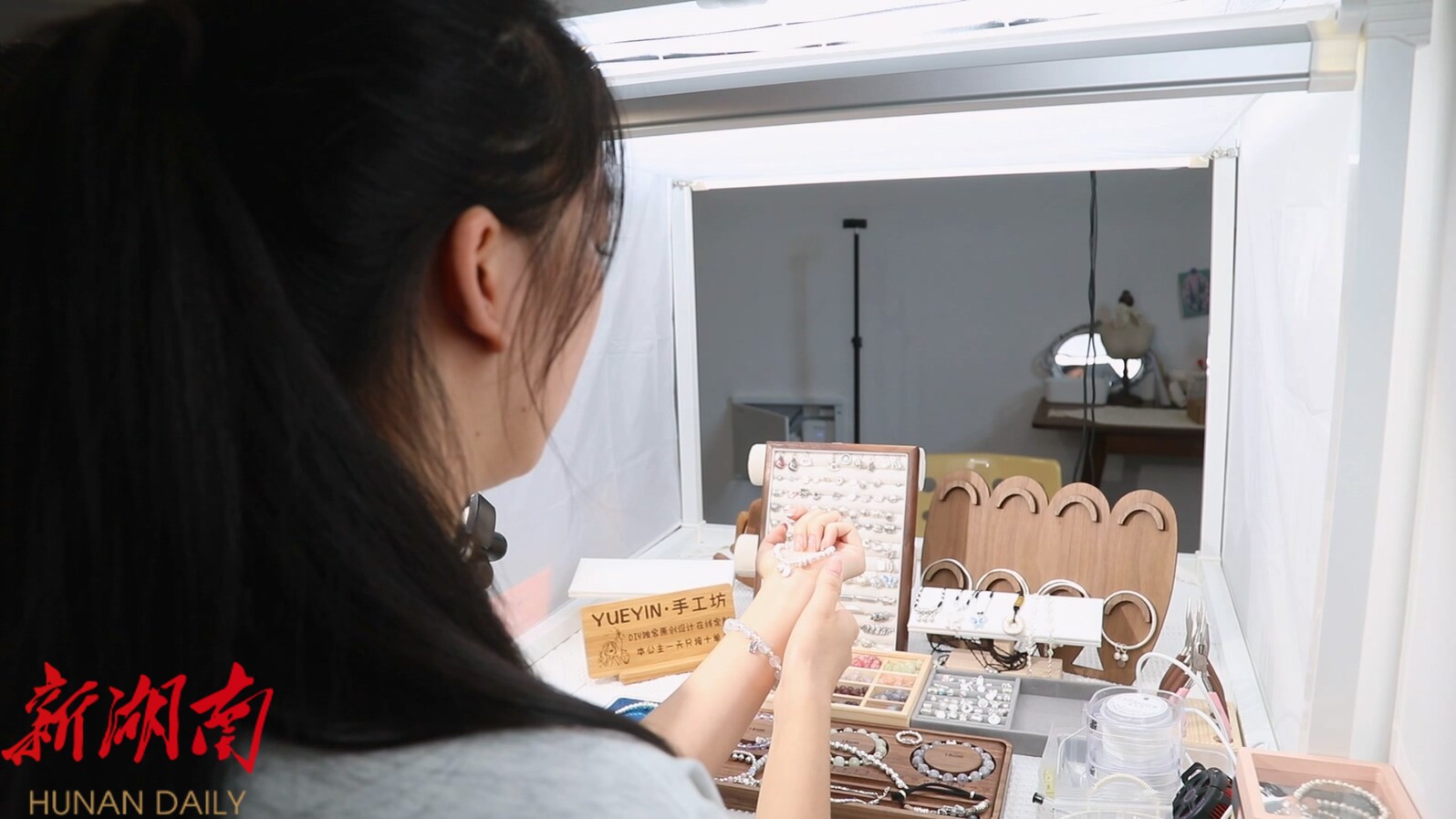 镜头前,创业大学生崔雪飘正热情洋溢地进行银饰品直播带货:“今天这一款给大家推荐的是来自我们‘中国银都’的银饰品,全部由我们匠心制作、纯手工雕刻,真的是非常哇撒的一款,大家都看一下吧......”