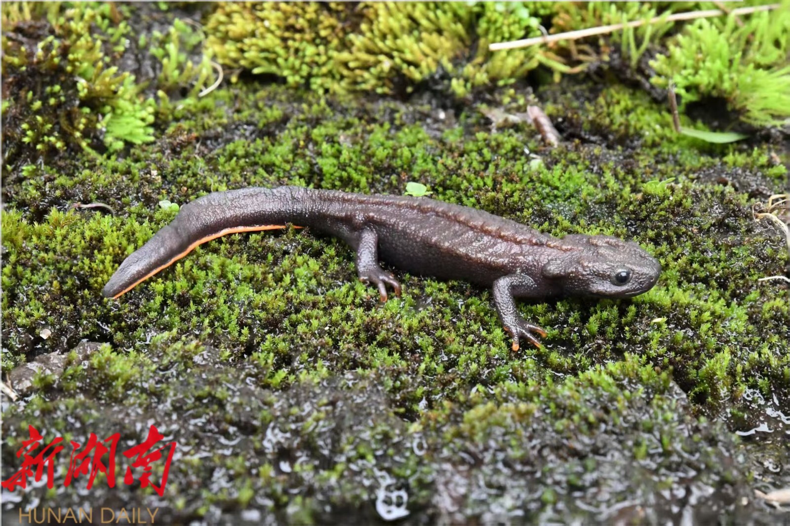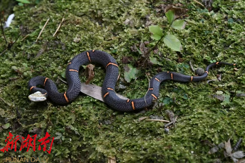 白头蝰并非高望界生态答卷上唯一的惊喜,2020年以来,这片绿色宝库如同开启生命“盲盒”,保护区先后监测发现7种野生动物在保护区的新分布,包括紫灰山隐蛇、黄链蛇、华西腹链蛇(湖南省新分布)、高望界疣螈(新物种,国家二级保护野生动物)、灰林鸮(国家二级保护野生动物)以及复齿鼯鼠,它们的“现身”,是对高望界生态环境的“集体点赞”。