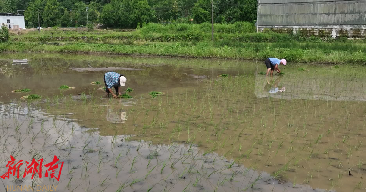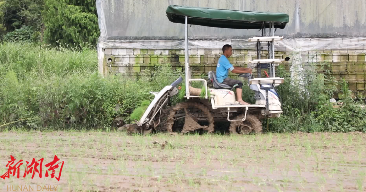 “晚稻产量高,效益好,因为赶时间,我们尽量用机械插。”炎炎烈日下,桐梓坪村的种粮大户谢兴生正带着几位村民抢插晚稻。今年,他流转了