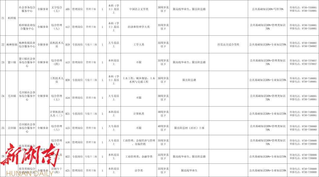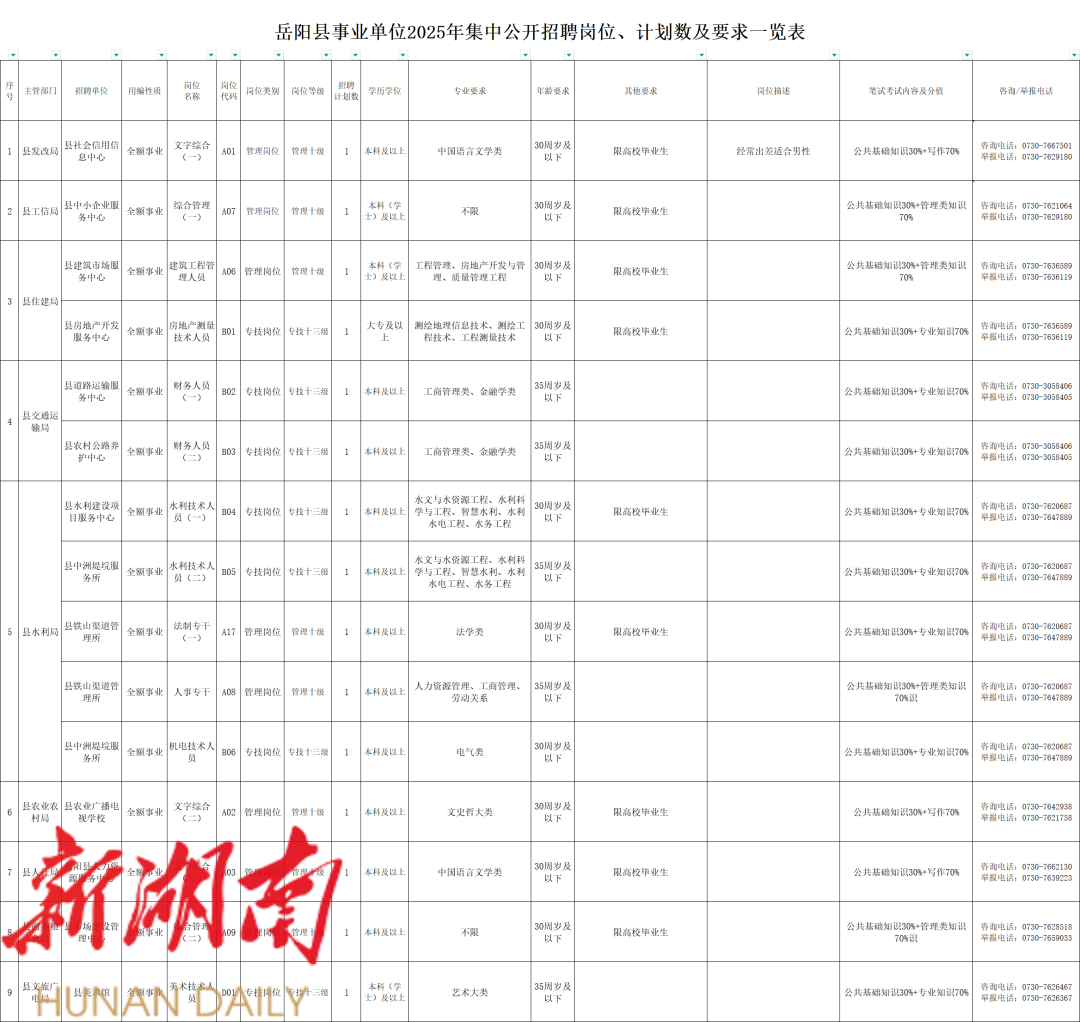 2025年岳阳市岳阳县事业单位招聘70人公告