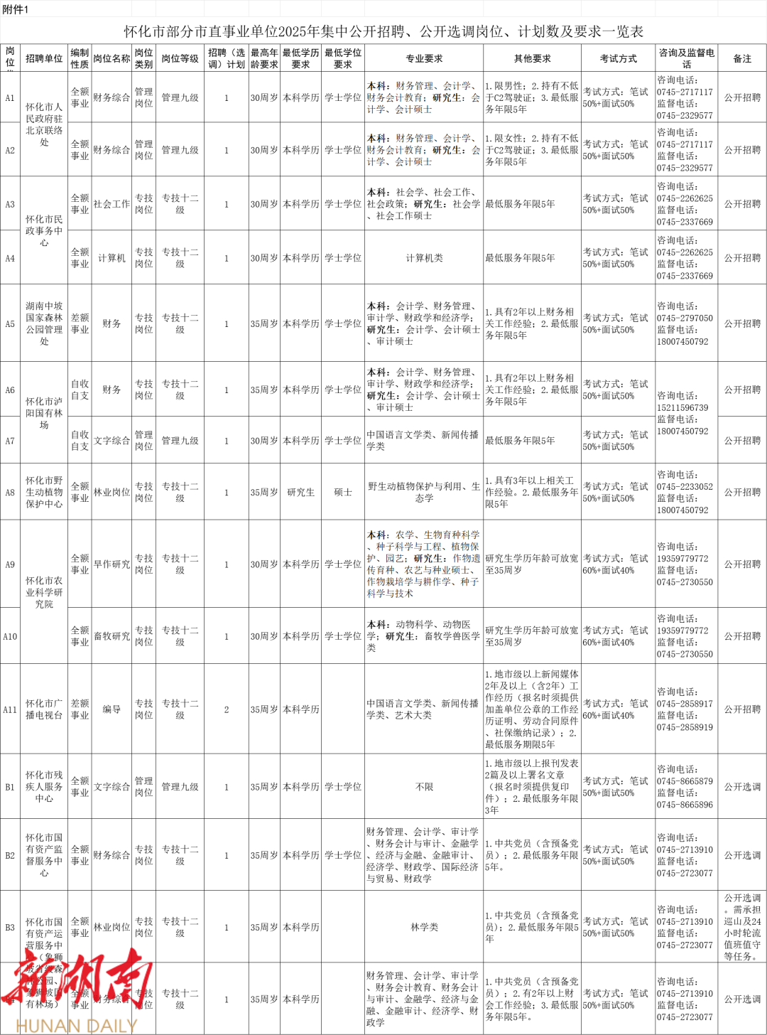 怀化市部分市直事业单位2025年集中公开招聘、公开选调工作人员公告