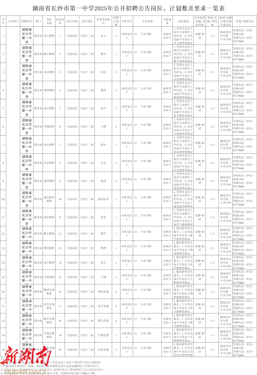 采取现场报名的方式,每人限报一个岗位,多报则取消应聘资格。报名地点为长沙市第一中学(湖南省长沙市开福区清水塘路81号)办公楼三楼会议室。