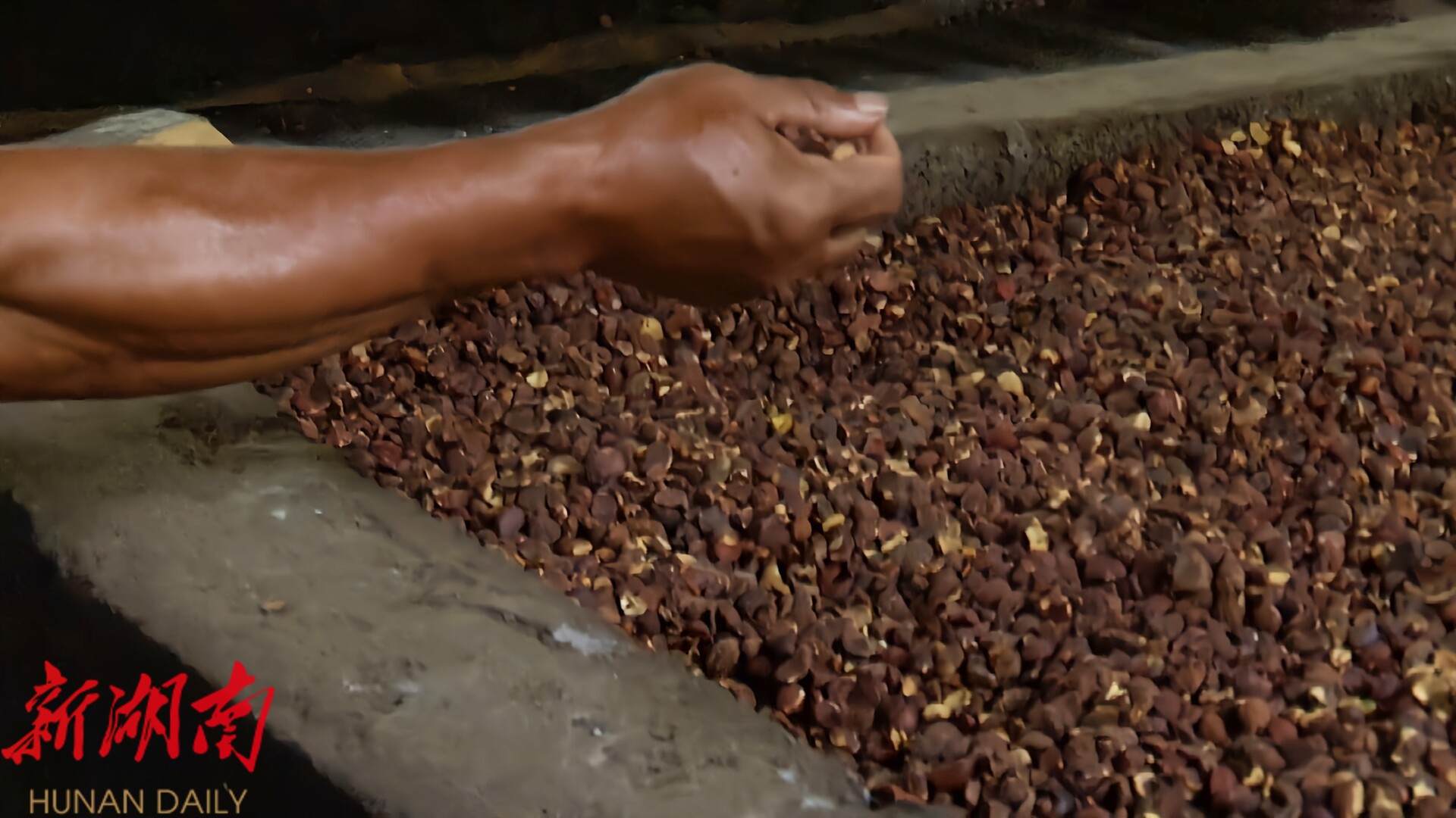 "看、碾、包、打",合作社负责人之一张二志用四个字道出了古法榨油的精髓。作为非遗传承人,他详细解释道:"首先要看茶籽晾晒程度,这是关键;然后碾碎干透的茶籽;接着包枯制成茶枯饼;最后打油。"这项技艺从1958年张二志父亲手工榨油开始,如今已传承三代。"现在我全家老小都会这门手艺。"张二志自豪地说。