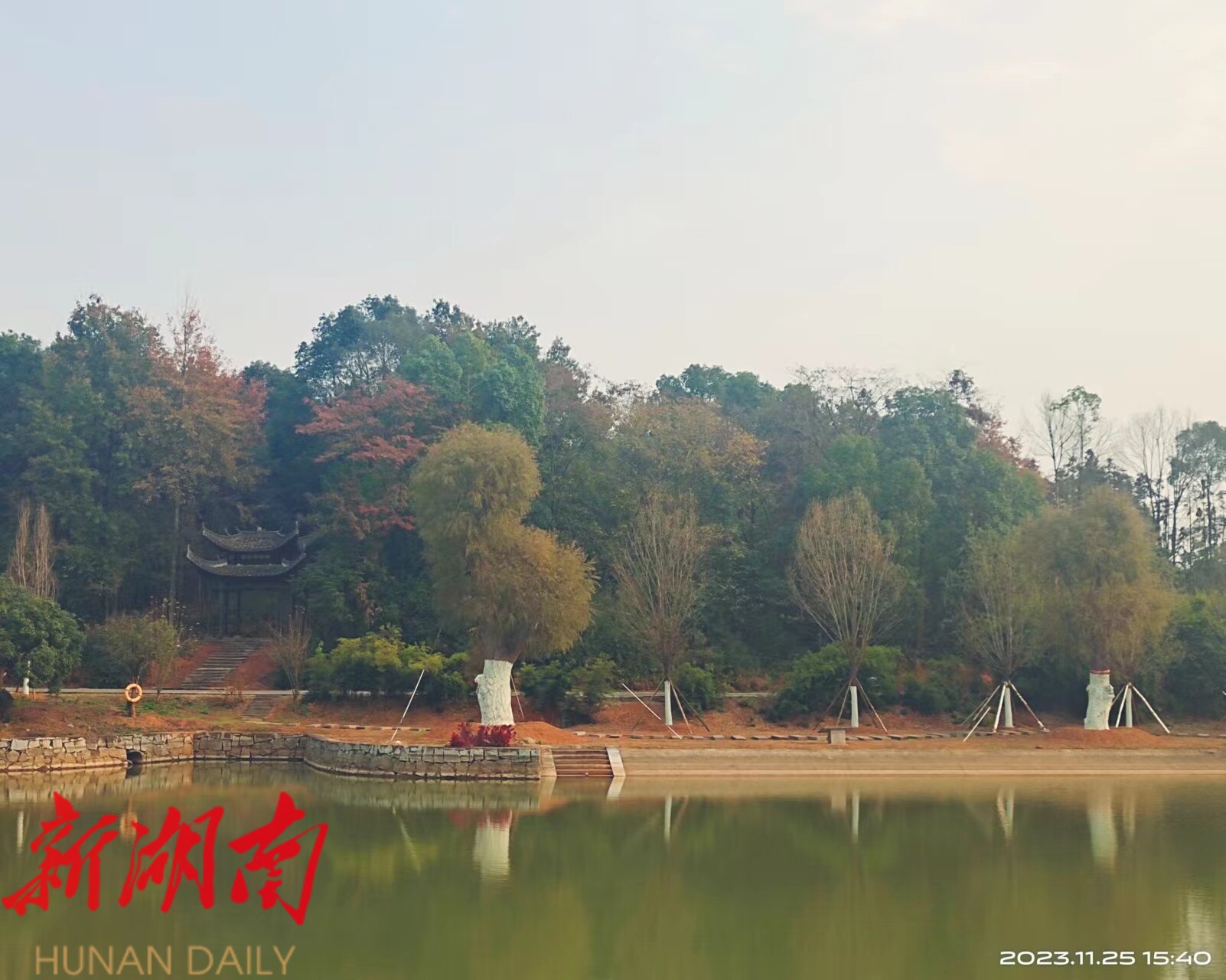 记忆中,我这是第5次来柳庄。第一次是十多年前,好友熊国庭奉命整修打造柳庄景区,承蒙他多次相邀,回湘阴时顺道看了看柳庄,也看看当时对柳庄在兹念兹的熊国庭,当时柳庄正在整修,现在柳庄景区的格局即是当时的规划。第二次是2021年5月1日,湖南经视策划并执行“2021首届湘阴美好生活房产消费节”,下午活动圆满结束后,我与湖南日报资深记者易令华同游柳庄,游文化长廊,逛农耕博物馆,瞻柳庄故居……两人兴致勃勃,一边赏玩,一边闲聊湖湘文化,相谈甚欢,尤其是易令华谈到左宗棠与陶澍、林则徐、贺长龄、曾国藩等人的交往及一些掌故,如数家珍,让我受益匪浅。第三次是2022年1月,应湘阴县委县政府之邀,参加“左宗棠故居~湖湘文化博览园开发建设峰会”,周秋光等一众大咖云集,我完全属于“打酱油”,参观走马观花,峰会更不便置喙。第四次是2022年春,湘阴县筹备纪念左宗棠诞辰210周年活动,我和周三军、张镇几人代表经视去宣讲策划方案,那一次算是认认真真把柳庄景区看了个遍,而且还翻查了一些史料。当时我们策划拟举办隆重的开幕式,拍一部电影、一部纪录片,在长沙举办有关左宗棠收复新疆的花鼓戏首演式,在柳庄搞一个沉浸式体验剧场,甚至异想天开,取西北左公柳柳枝,在湘阴县城左宗棠广场沿芙蓉大道(或湘江边)至樟树镇柳庄,插栽杨柳30里……然而“策划很丰满,执行很骨感”,系列策划因经费等原因,经视没有继续跟进,后来湘阴县择其优化,自主执行了一些,移植“左公柳”就是其中一项,听说具体方案出自文旅策划大师叶文智。而今天第五次来柳庄,是经不住经视文旅产业部周海宁、易孝礼、杨颖等一众帅哥美女的策动,要来我家乡湘阴品闸蟹、逛“窑子”(岳州窑)、游柳庄,而我的主要目的,还是来看看那两棵千里迢迢从大漠黄沙移步江南水湄的“左公柳”。