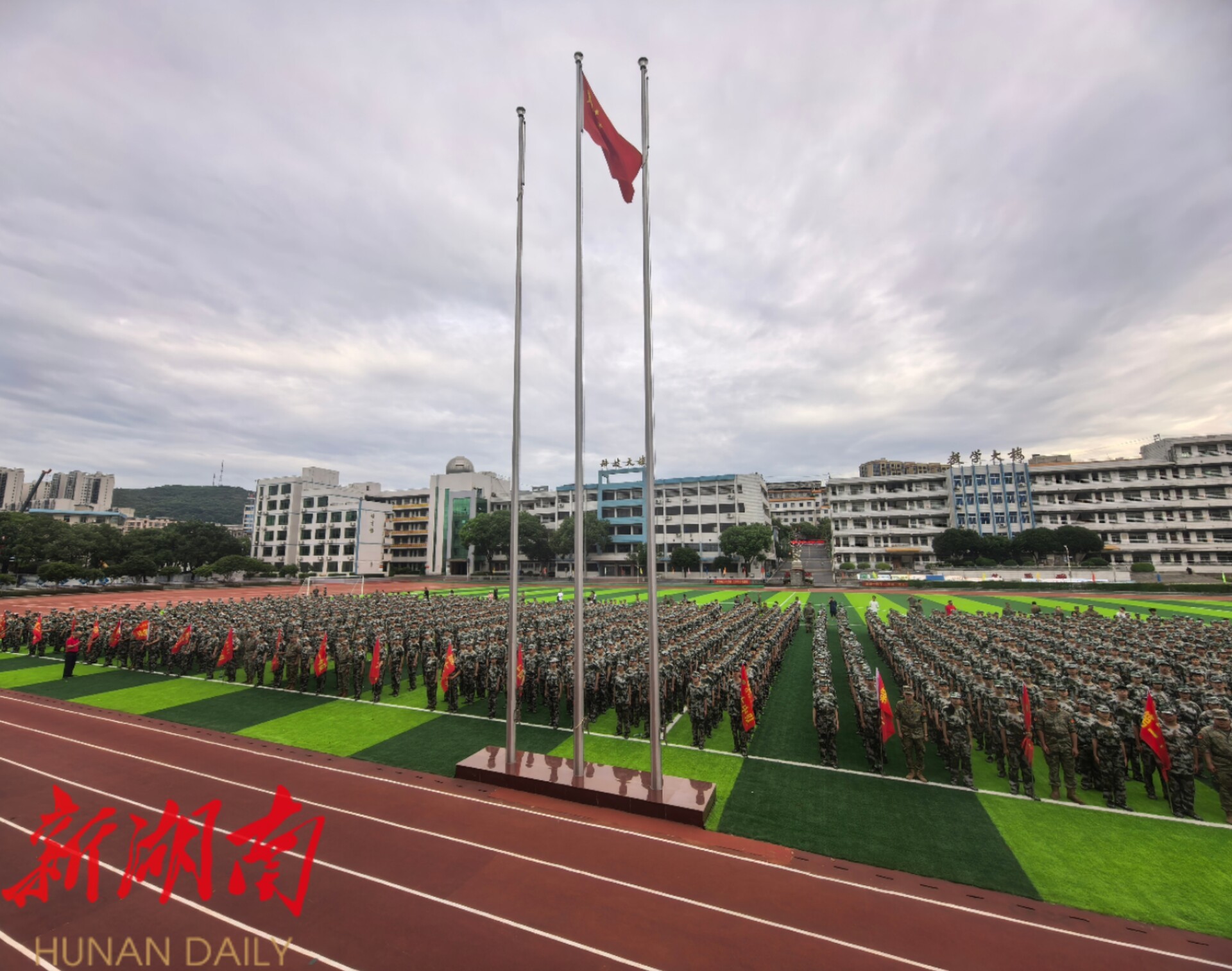 新桂阳8月8日讯(记者 唐汀)8月7日,桂阳三中举行2025级新生军训开营仪式。