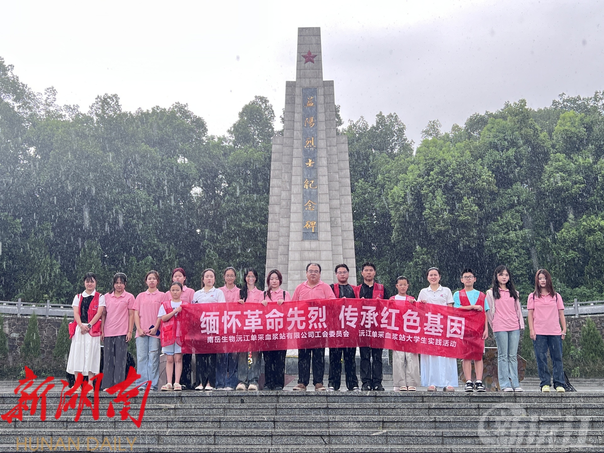 新沅江客户端8月8日讯( 记者 黄曦)8月7日,南岳生物沅江单采血浆站有限公司开展“筑梦青春·扬帆起航”2025扬帆计划青年学生暑期实践夏令营活动,组织十多名沅江籍在校大学生来到益阳市秀峰公园烈士纪念碑、丰堆仑革命旧址参观学习,共同“缅怀革命先烈·传承红色基因”,接受深刻的爱国主义和革命传统教育。
