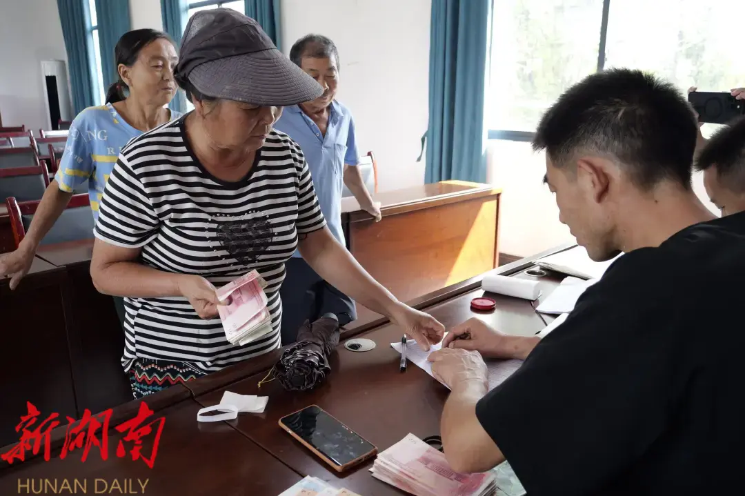 桑植县桥自弯镇三和村村民喜领黄蜀葵分红