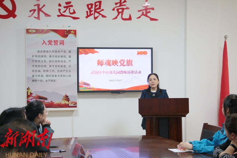 为庆祝中国共产党成立100周年,进一步促进校园师德师风建设,5月6日,武陵区中心幼儿园举行了“师魂映党旗”教师演讲比赛。
