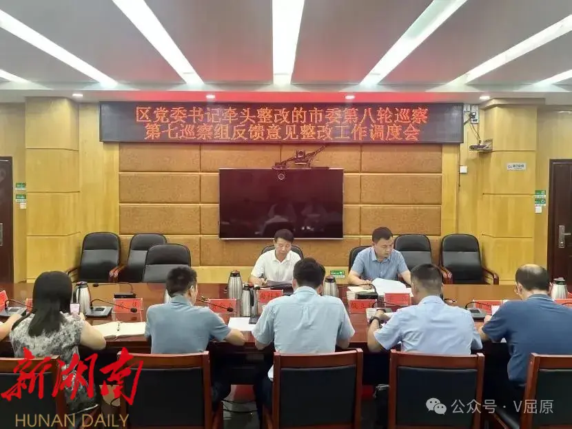 屈原融媒8月11日讯(记者:魏璐璇 )8月8日,区党委书记向科军主持召开区党委书记牵头整改的市委第八轮巡察第七巡察组反馈意见整改工作调度会。区党委委员、管委会常务副主任湛江出席会议。