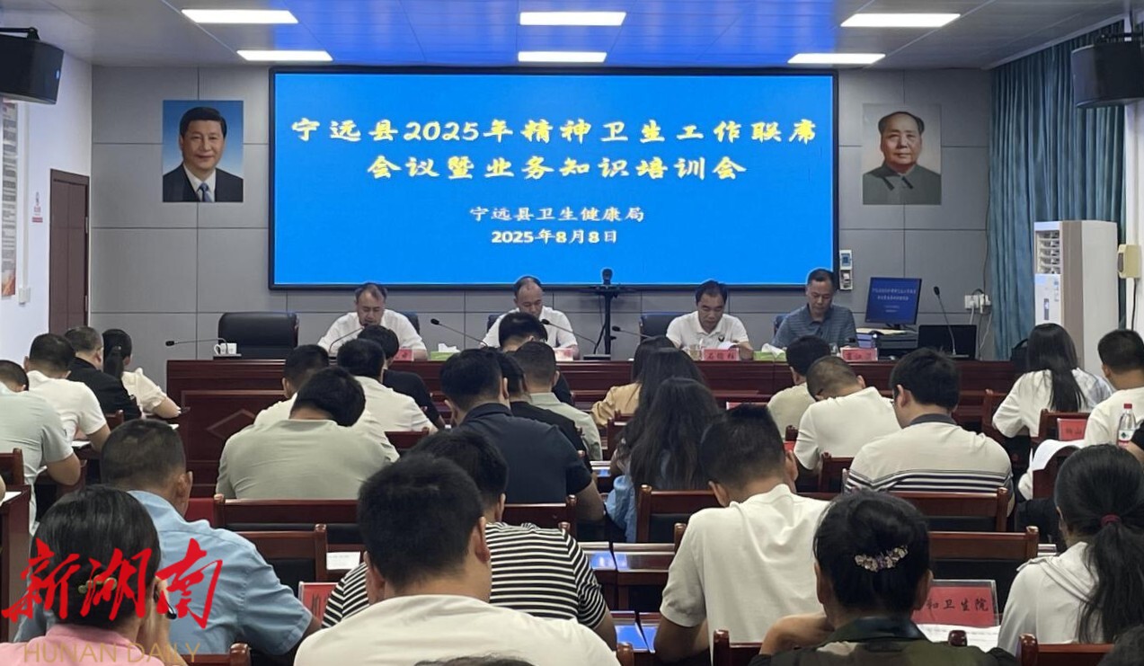 湖南日报·新湖南客户端8月11日讯(通讯员 宁新综) 近日,宁远县精神卫生工作联席会议暨业务知识培训会在县卫健局召开。会议以“织牢网底、协同联动、精准服务”为主题,总结上半年工作,分析当前形势,部署推进全县精神卫生工作。湖南省精神卫生中心办公室主任、湖南省精神卫生项目办公室主任谌良民到会授课。县委政法委、县卫健局相关负责人,县精神病防治工作联席成员单位、乡镇(街道)分管领导、卫生院分管领导、精防专干,精神科医院分管领导、信息员,精卫中心等80余人参加。