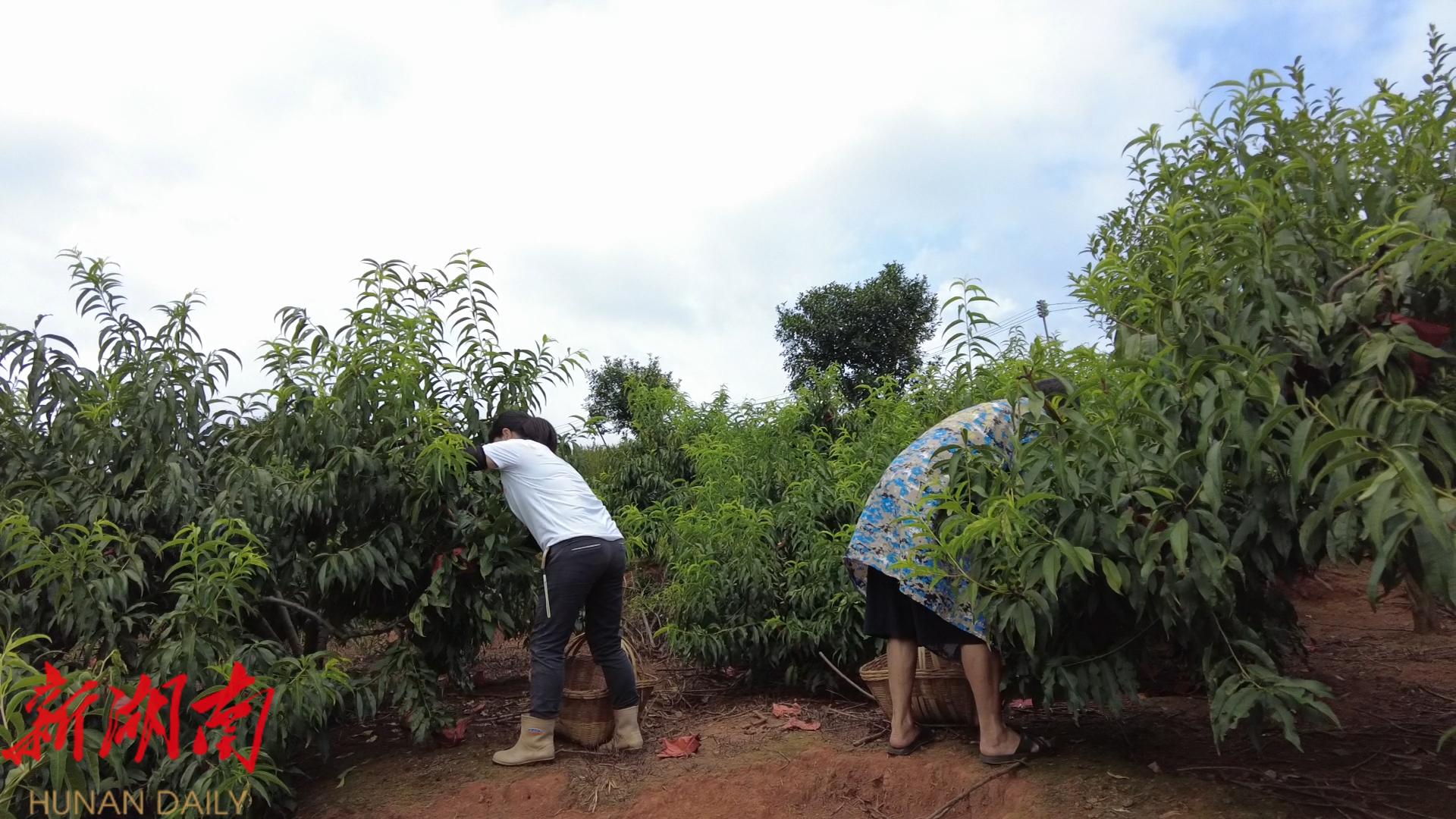 洋塘陈祥泰生态种养殖专业合作社负责人陈立华:“我们种的锦绣黄桃甜度高、口感脆。今年亩产预计超3000斤,批发价每斤8元,供不应求。”