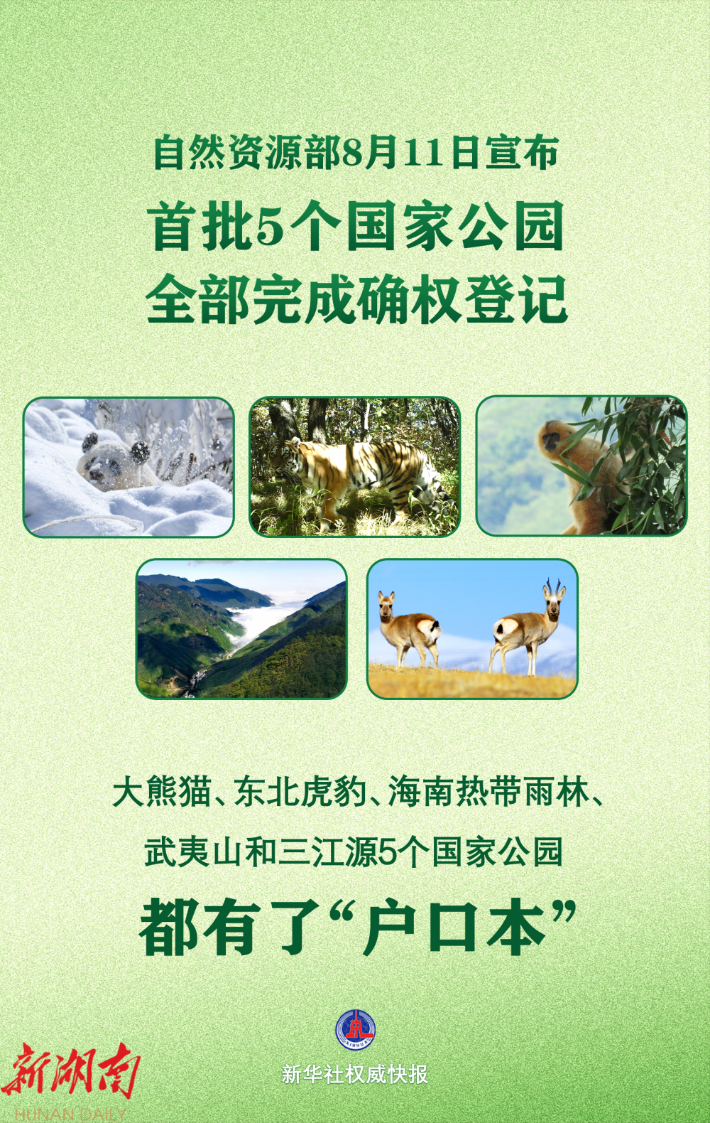 大熊猫、东北虎豹、海南热带雨林、武夷山和三江源5个国家公园都有了“户口本”。