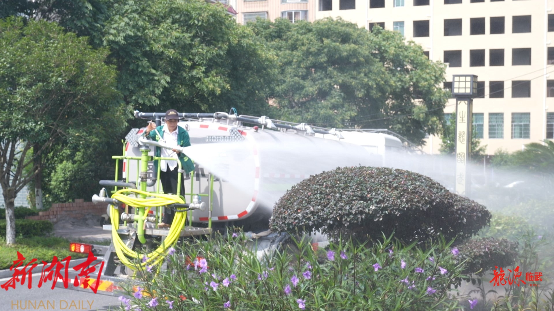 龙源临武客户端8月11日讯(记者 徐杨政 实习记者李悦)连日来,临武县持续高温晴热天气,绿化植物面临严峻“烤”验,为保障绿化苗木的良好长势,县园林绿化服务中心积极应对,多措并举为苗木绿植“解渴降温”。