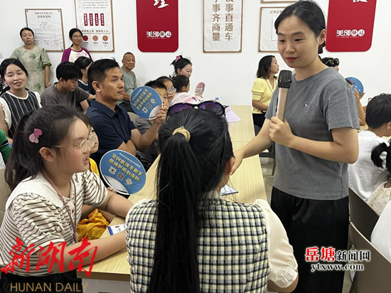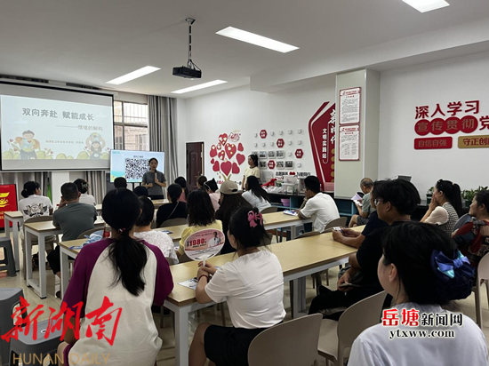 岳塘融媒 8 月 11 日讯 (通讯员:周晓洁)岳塘区五里堆街道向阳社区从辖区“三长”下户收集的意见及建议中了解到,暑假期间,家庭教育问题明显增多,不少居民希望在家庭教育方面能有专业的学习机会。为帮助广大家长提升家庭教育水平,解决在孩子教育过程中遇到的实际问题,促进家庭和谐与青少年健康成长,近日,岳塘区五里堆街道向阳社区党总支开展一场以“双向奔赴 赋能成长”为主题的家庭教育课堂活动。