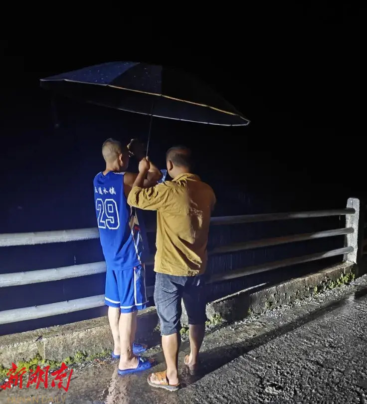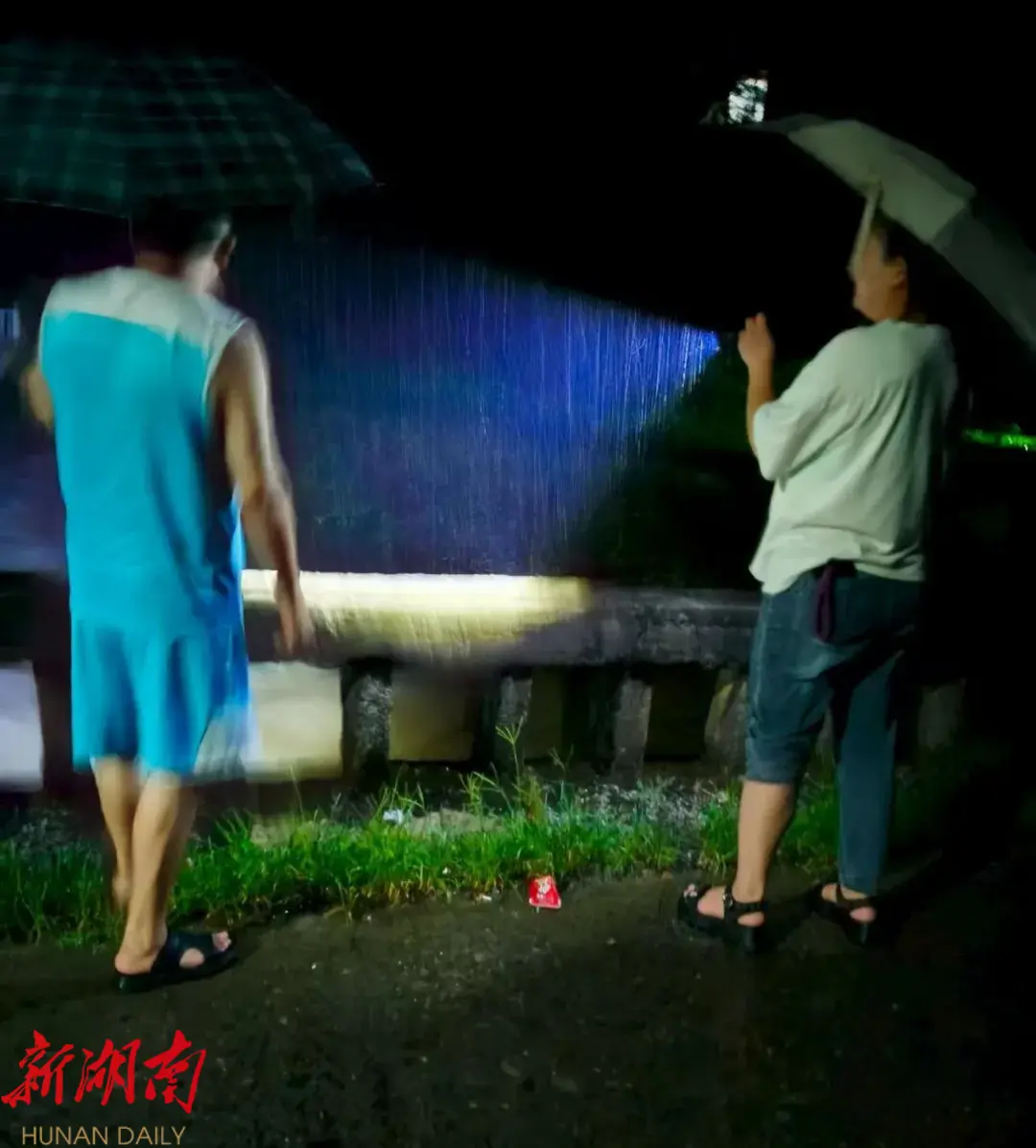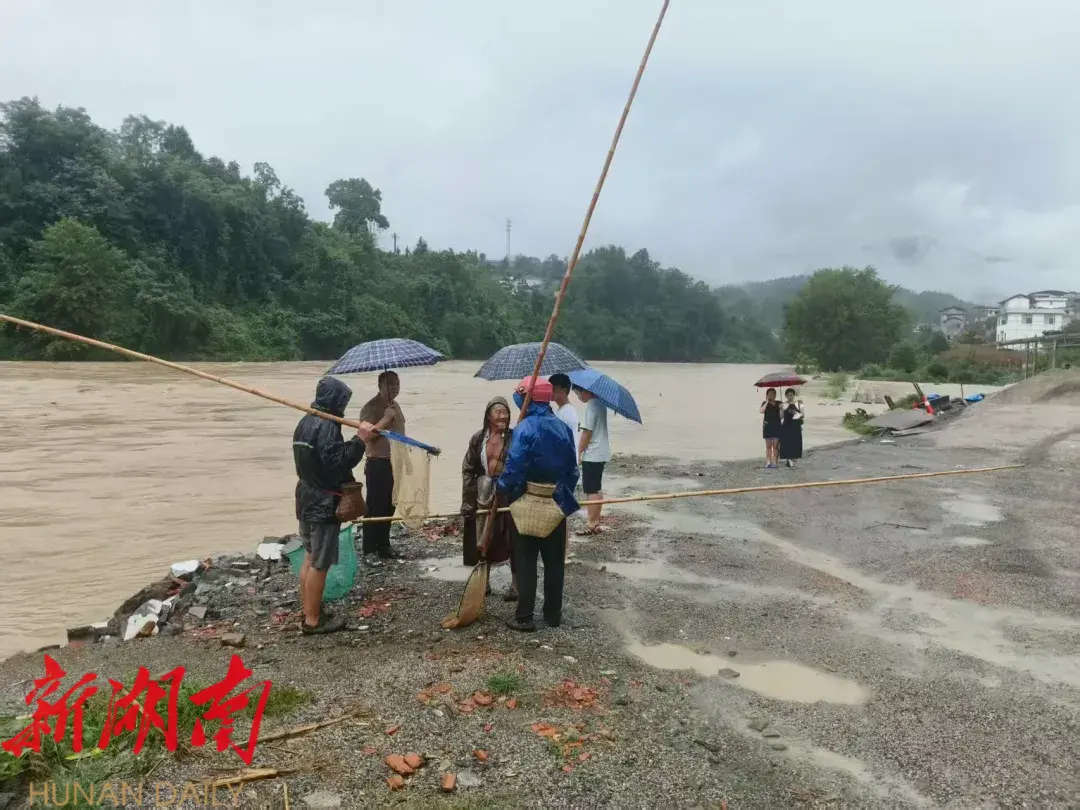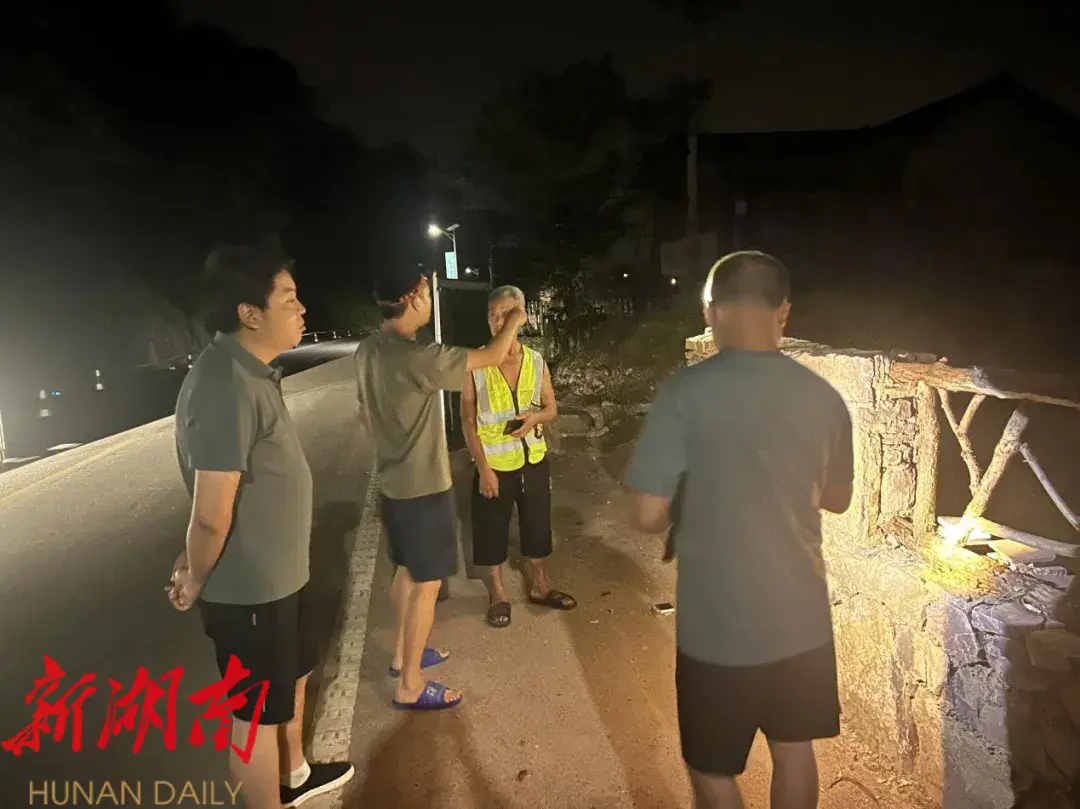 桥自弯镇领导班子带队巡查山塘水库、重点路段及河道,现场排查隐患,及时劝返河边钓鱼人员。截至11日0时44分,已安全转移危险区域群众9户23人。