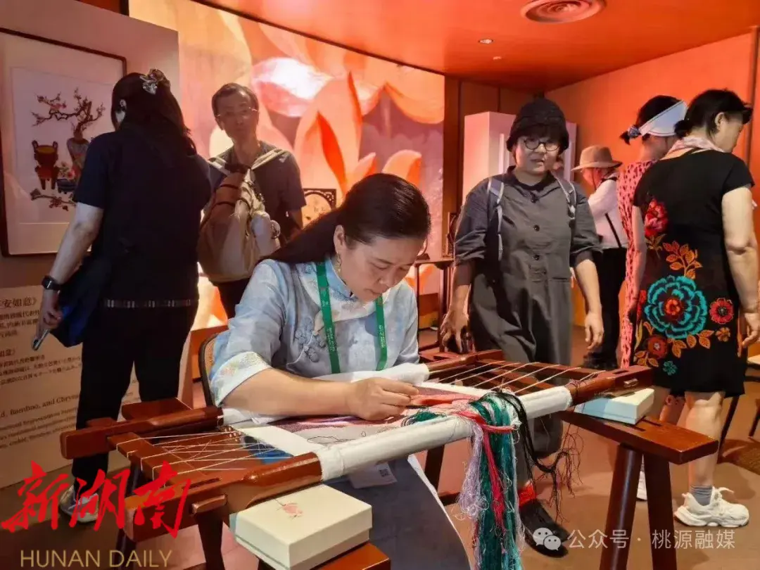 视外桃源客户端8月11日讯(通讯员: 曾志刚 ) 2025年8月6日至8日,大阪世博会湖南活动周盛大启幕,一场跨越国界的文化交流盛宴精彩上演。在这片汇聚全球目光的舞台上,桃源刺绣作为湖湘文化的璀璨明珠,闪耀登场,向世界展示了其独特的艺术魅力。