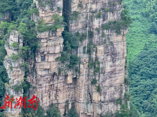 1600米凌空飞跨 国内最长高空扁带落户张家界国家森林公园黄石寨