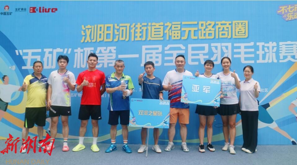 湖南日报·新湖南客户端8月12日讯(通讯员 廖颖姝)8月9日,开福区浏阳河街道福元路商圈第一届“五矿杯”全民羽毛球赛闭幕式暨颁奖典礼在五矿长沙·Live二期一楼北广场圆满落下帷幕。赛事由长沙五矿商业管理有限公司与开福区浏阳河街道办事处联合主办,有效激发了商圈运动热情,深化了社区凝聚力。