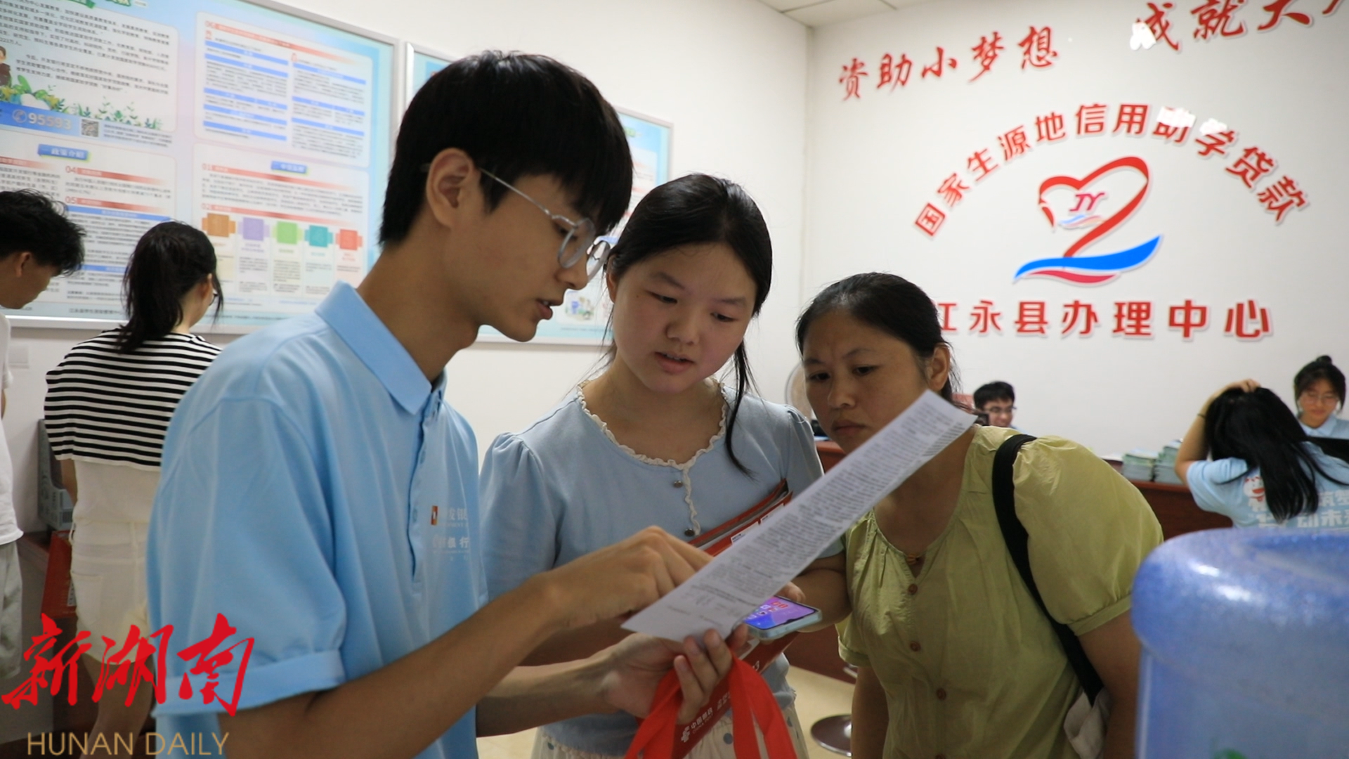 这一政策利好惠及了众多学子。学生周乐今年考到了湘潭理工学院,因为家中姐弟三个都要读书,家庭经济压力较大,在得知助学贷款政策之后,周乐带着妈妈前来办理。