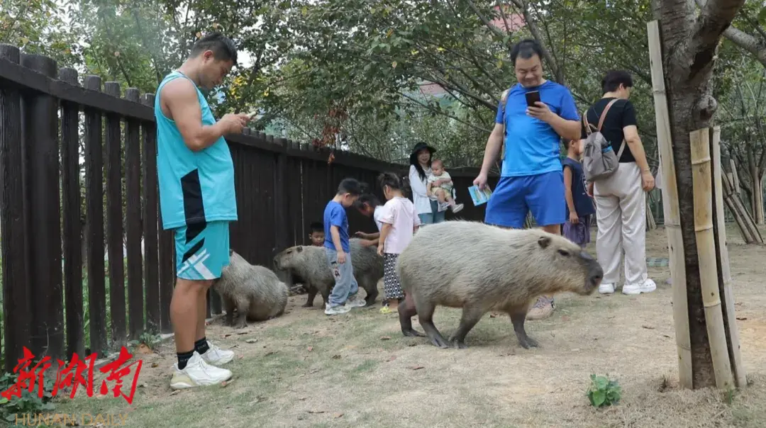 暑期末,前来野生动物世界遛娃的家庭逐渐增多。大家充满热情地与明星动物卡皮巴拉亲切互动、有点紧张地与各类猛兽合影留念、到游乐场区体验诸多游玩项目,尽享人与动物和谐相处的“野趣”。